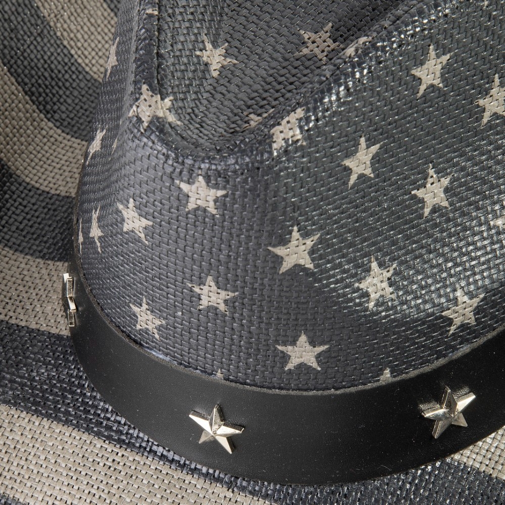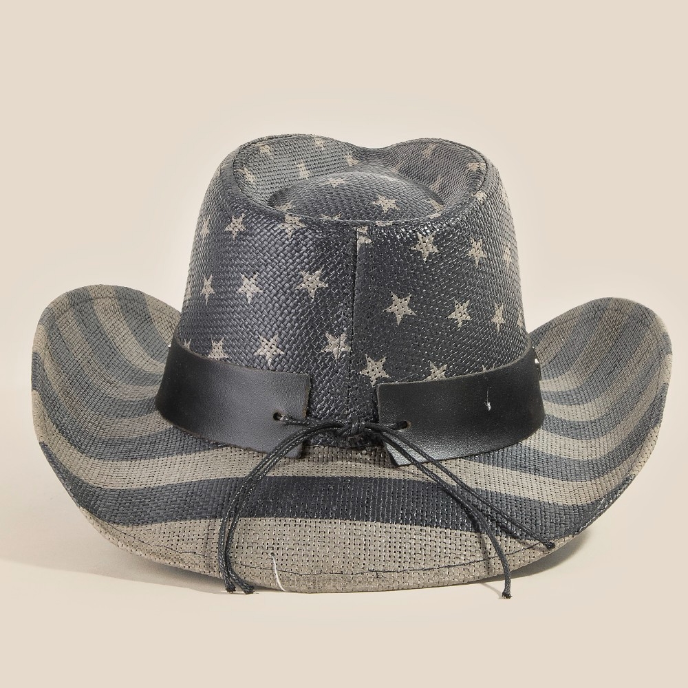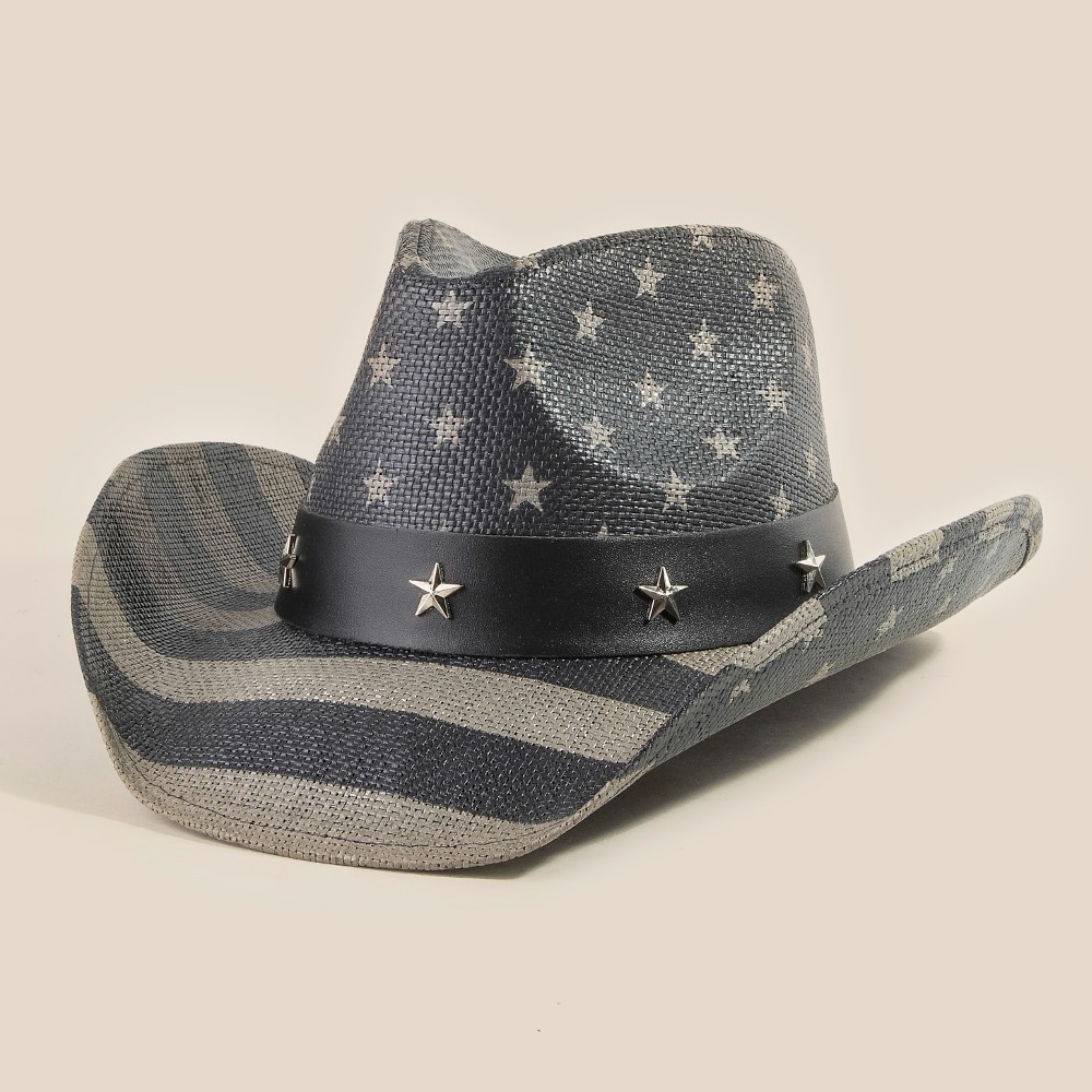 Bold, daring, and endlessly stylish, this cowboy hat emanates an elegant usa flag with studded stars design. This cowboy hat is ideal for both casual and formal events, adding a touch of sophistication to any outfit. Available in BK, BL and MU. This item is sold in packs of 1.