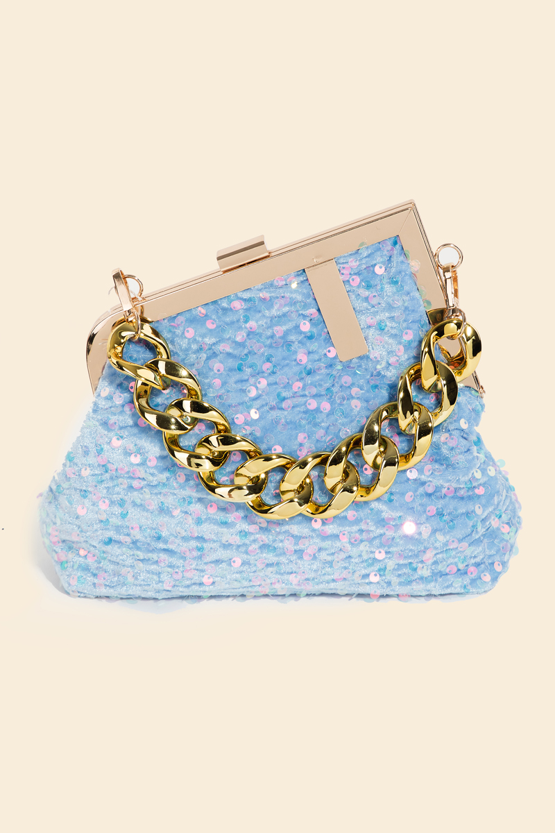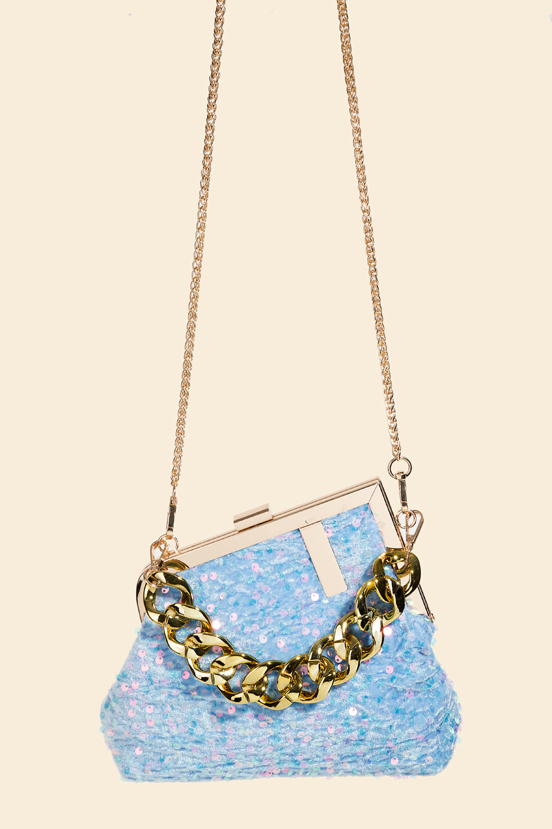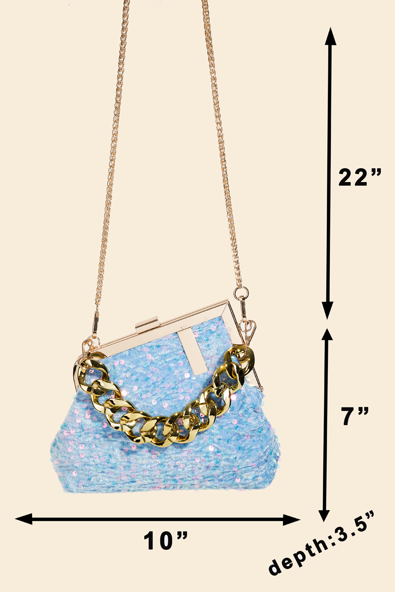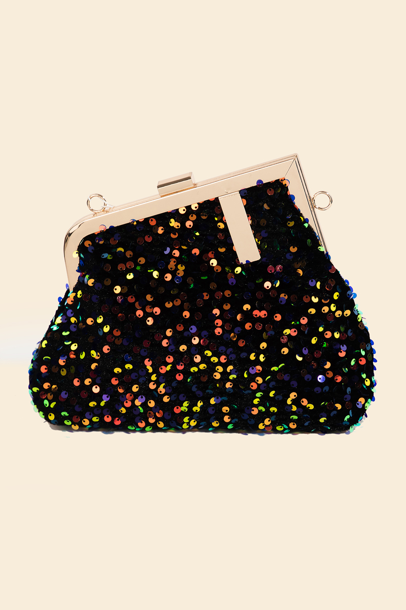 • An instant wardrobe staple, this hand bag reveals an intricate abstract metallic frame sequin hand bag design. Elevate your outfit with this stylish accessory that's perfect for any occasion. This item is sold in packs of 1.