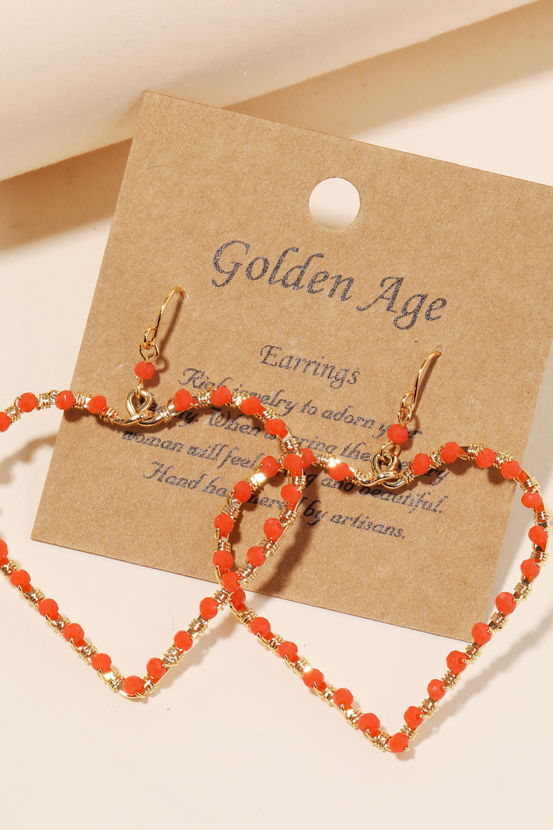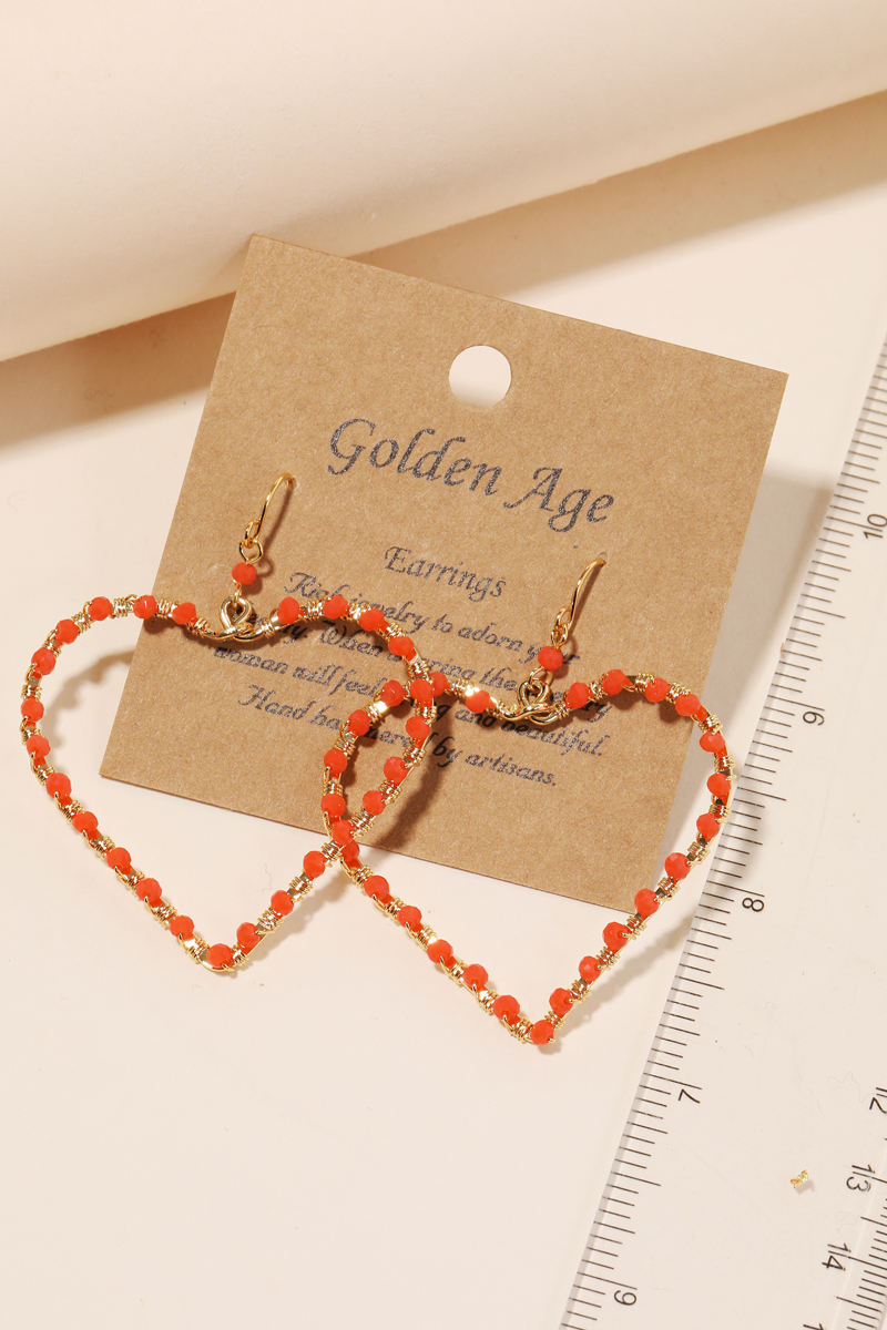 • This new must have pair of drop earrings is made into a beaded heart cutout drop earrings design. Perfect for the Spring season! This item is sold in packs of 1.