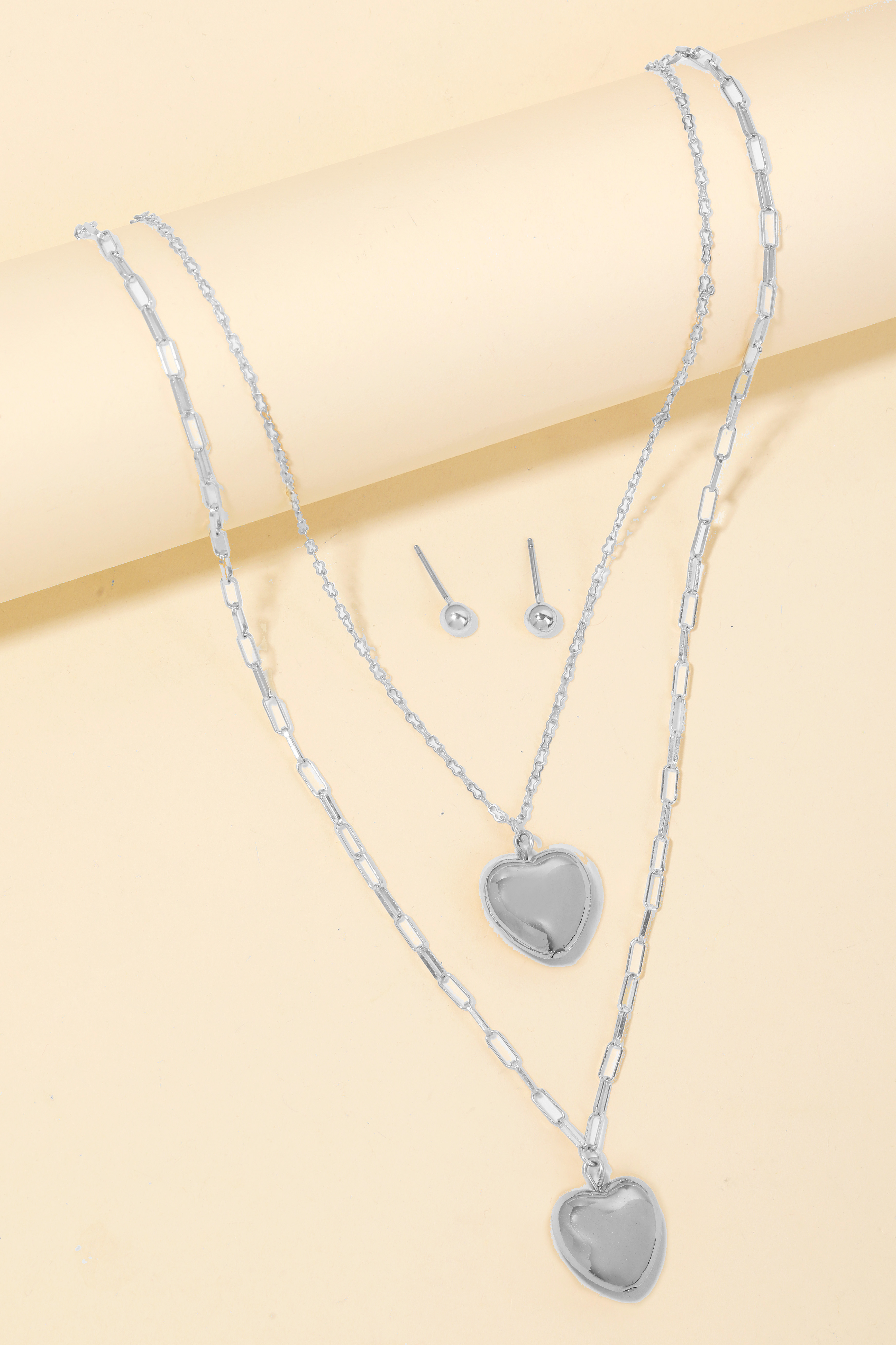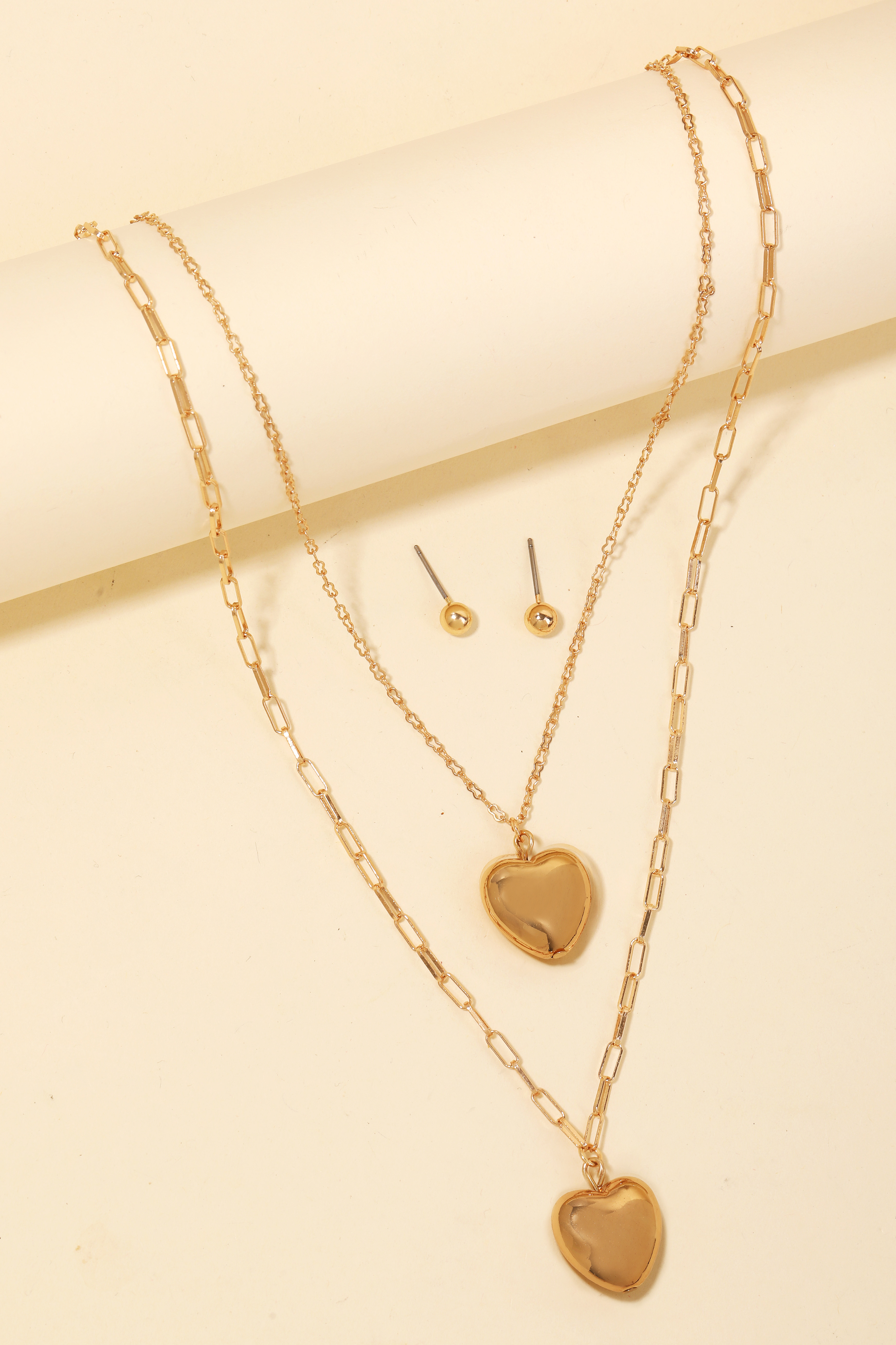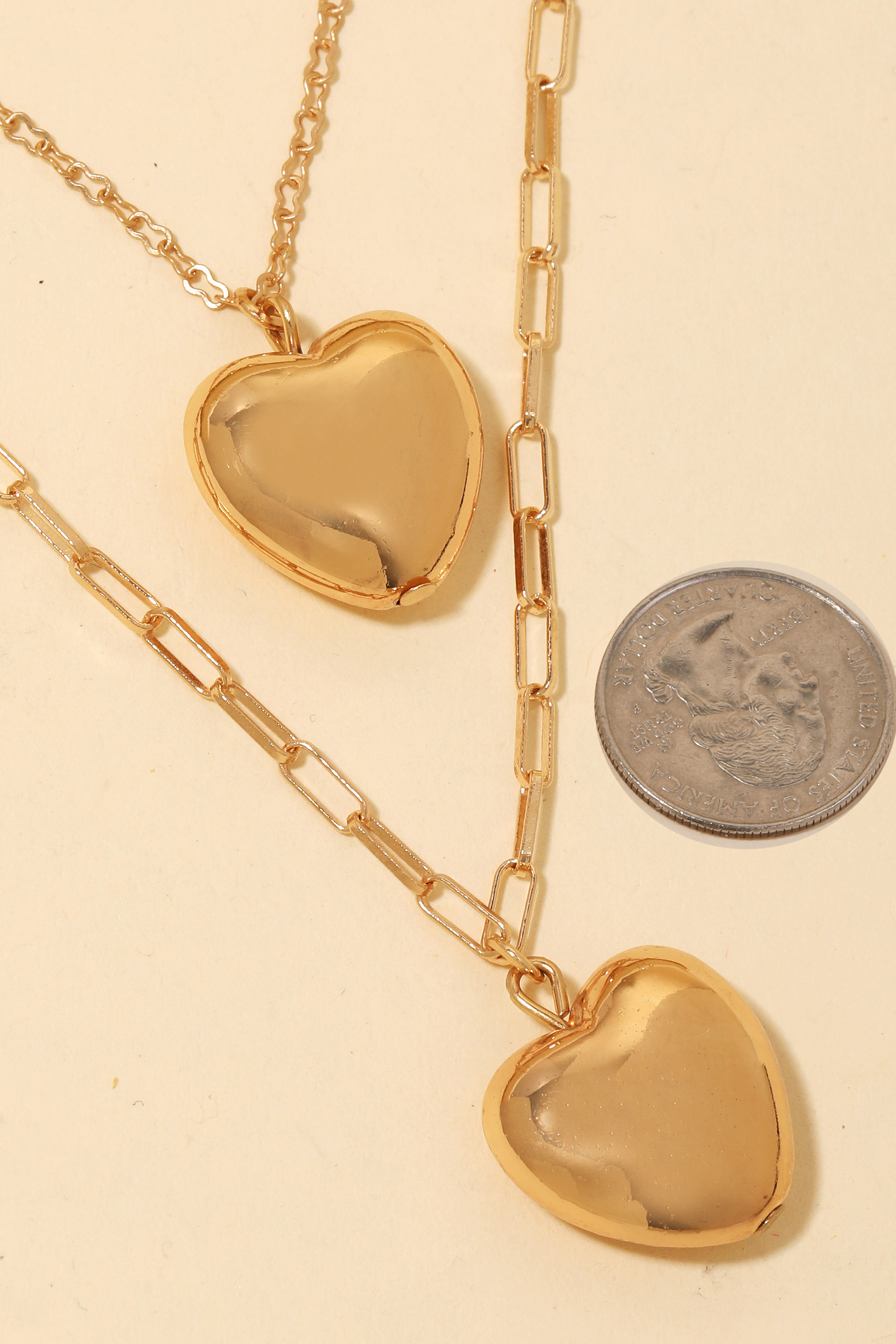 • A piece that will never go out of style, this necklace set showcases an alluring double metallic polished heart pendant necklace set design. A must-have accessory that effortlessly enhances your style, no matter the occasion. Available in G and S. This item is sold in packs of 1.