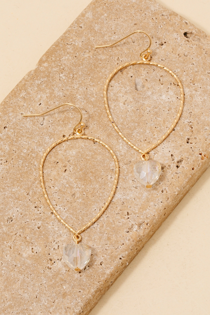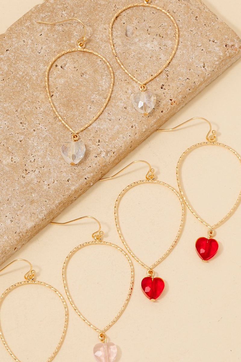 • Perfect for any fashion-forward individual, this pair of dangle earrings brings a one-of-a-kind faceted glass heart charm tear design. This item is the perfect way to add some texture and interest to any outfit. Available in AB, PK, RED. This item is sold in packs of 1.