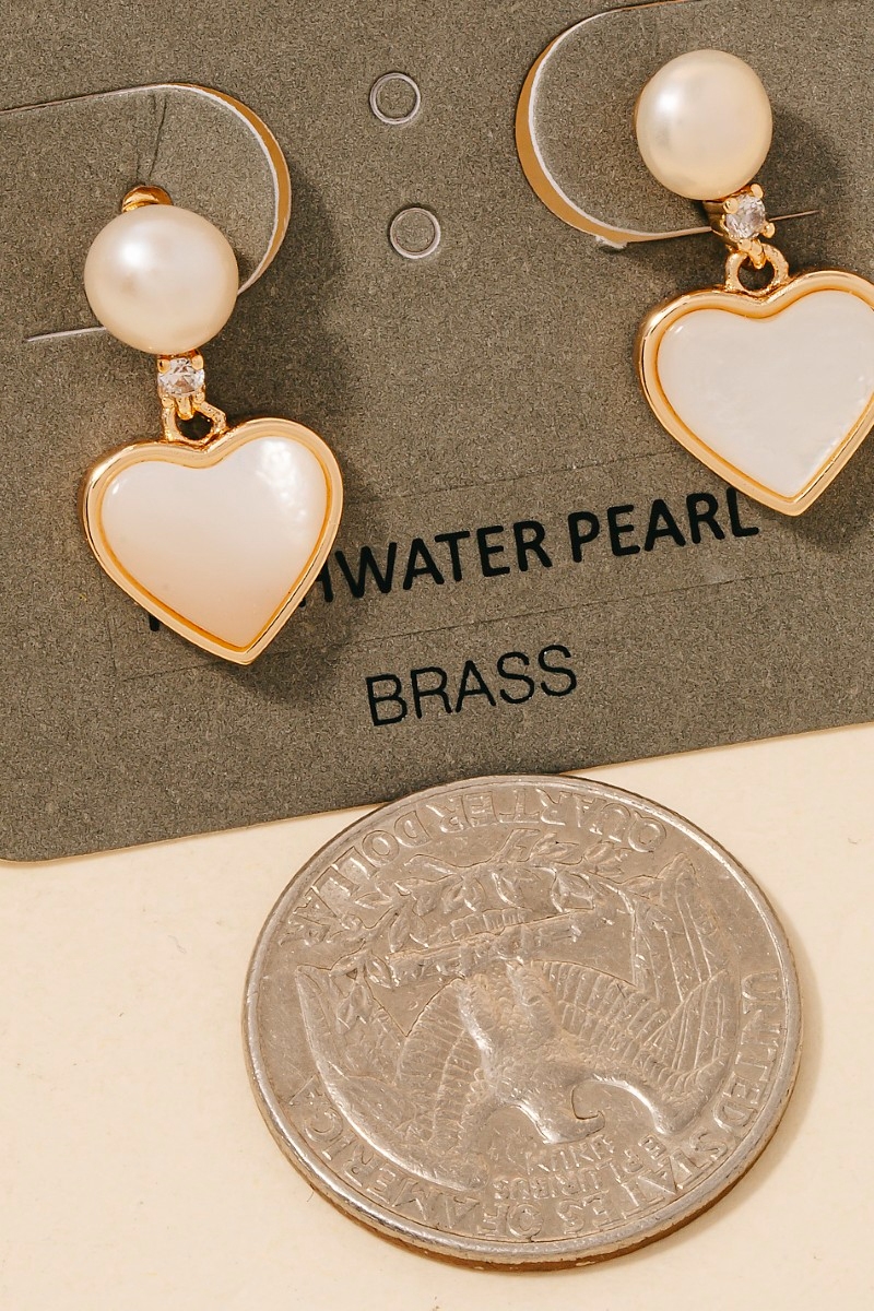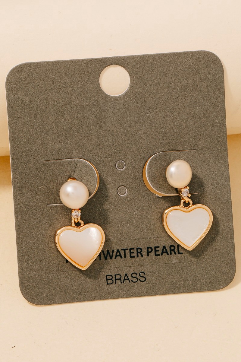 • This season's hottest pair of drop earrings, this pair of drop earrings exudes a refined freshwater pearl heart charm stud design. The perfect way to elevate any outfit, this pair of drop earrings adds a touch of elegance and style. Available in GDMOP. This item is sold in packs of 1.
