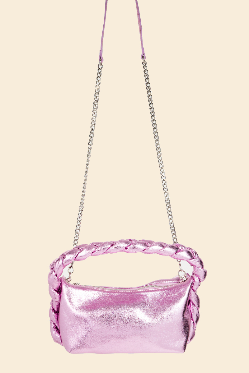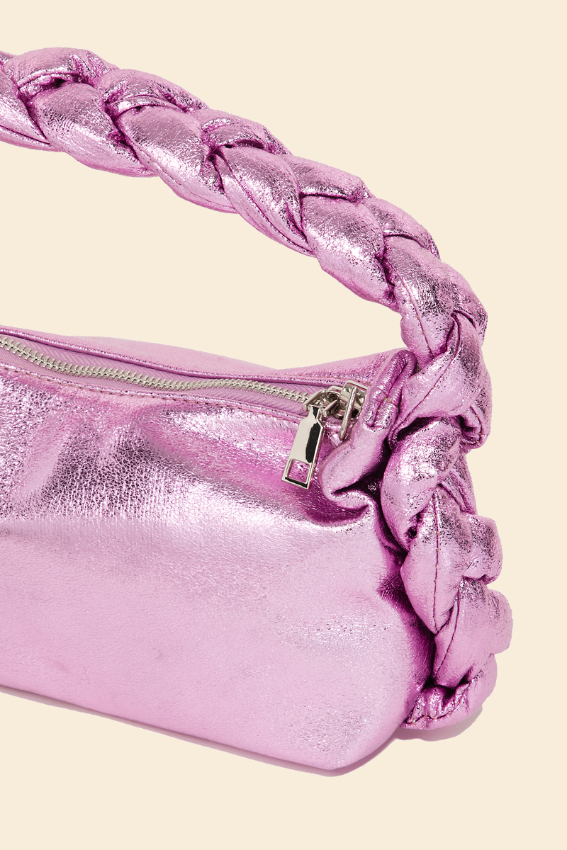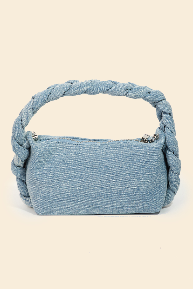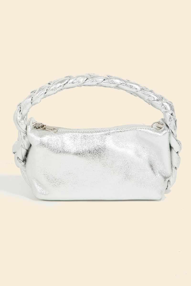 Perfectly polished and endlessly versatile, this bag features a distinct glossy rectangle top handle braid hand design. Embrace fashion flexibility with this versatile accessory, designed to effortlessly enhance the sophistication of any outfit. Available in BL, DBL, LBL, PK and S. This item is sold in packs of 1.