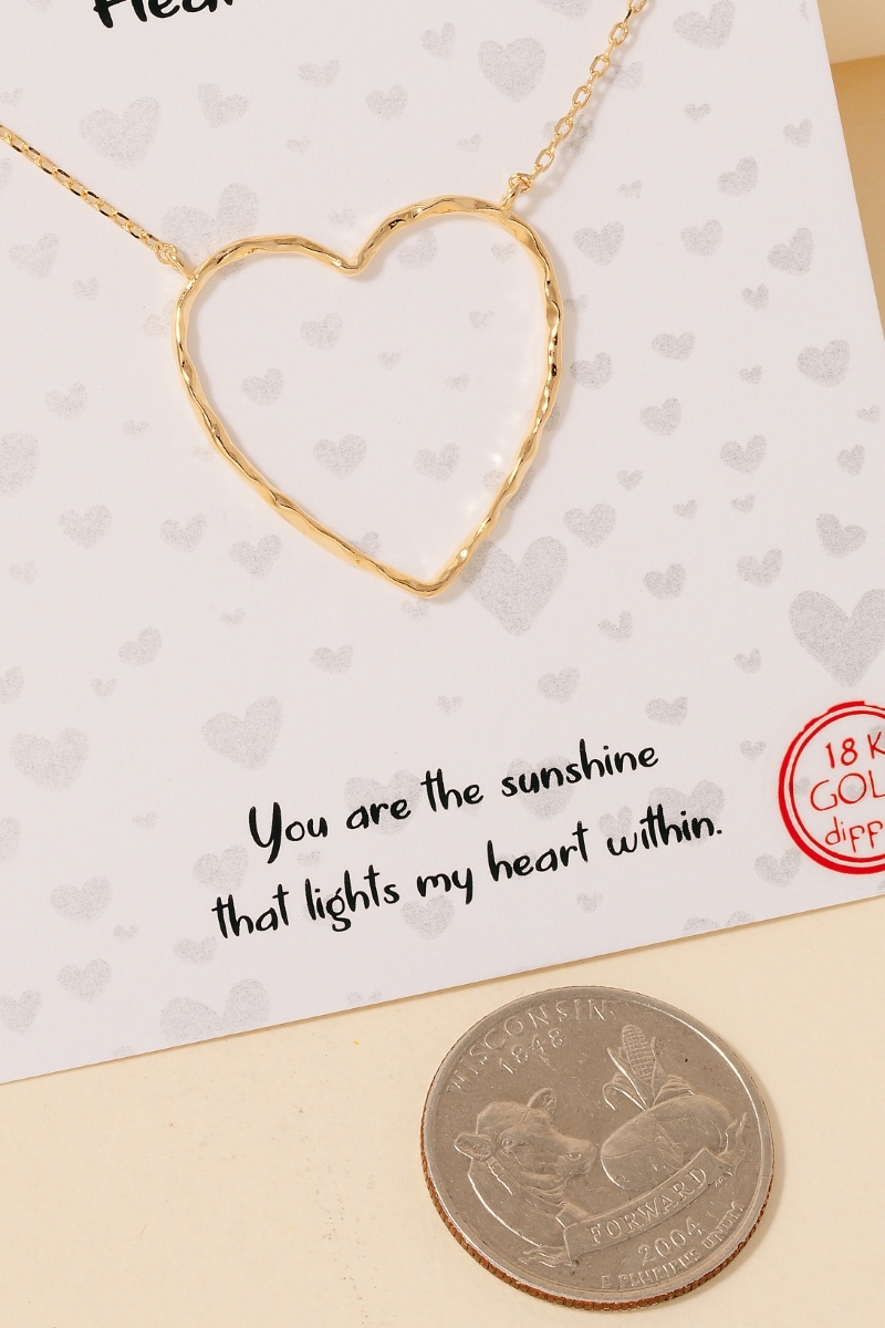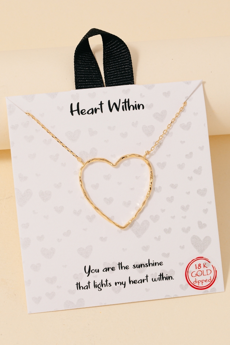 This necklace showcases a unique gold dipped warped heart pendant style. Experience refined sophistication with this understated yet stylish piece.