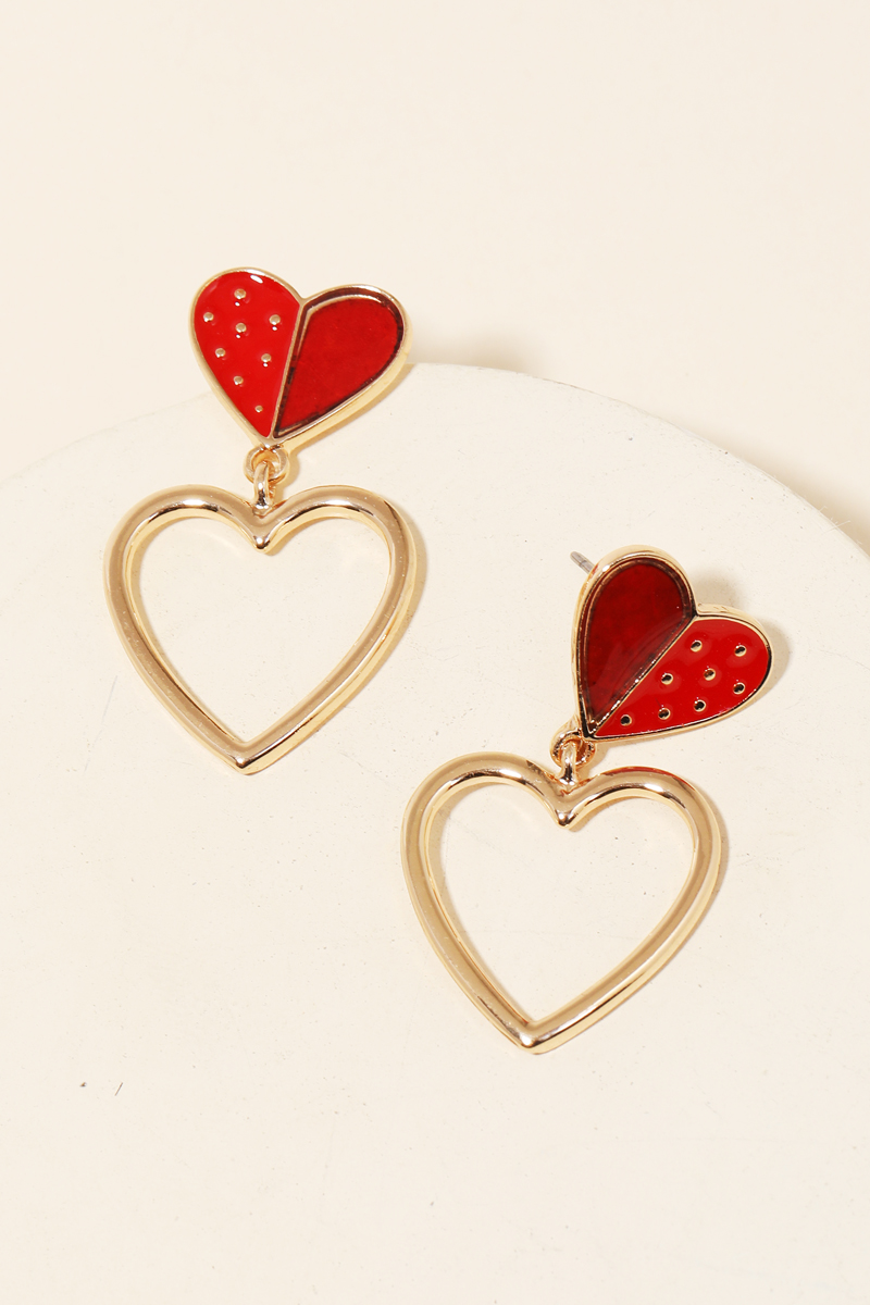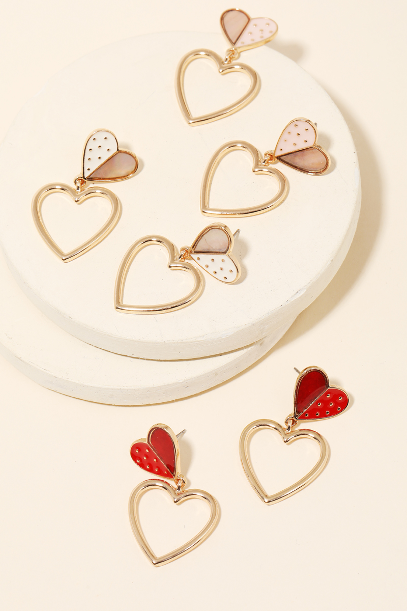 This soon to be trending must have pair of drop earrings made into gorgeous mini heart cutout drop earrings design. Perfect for business casual occasions! Available in IV, LPK and RED. This item is sold in packs of 1.