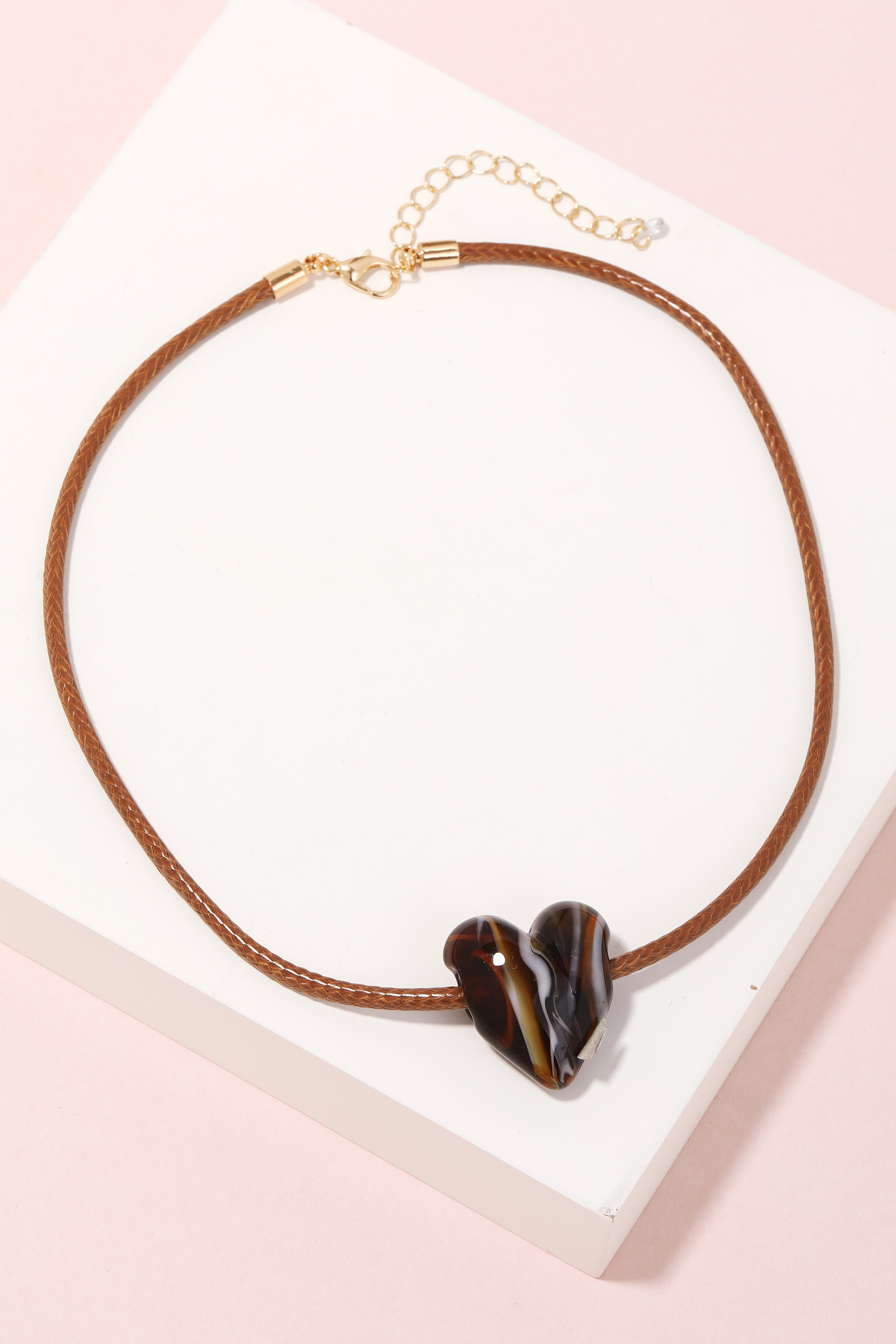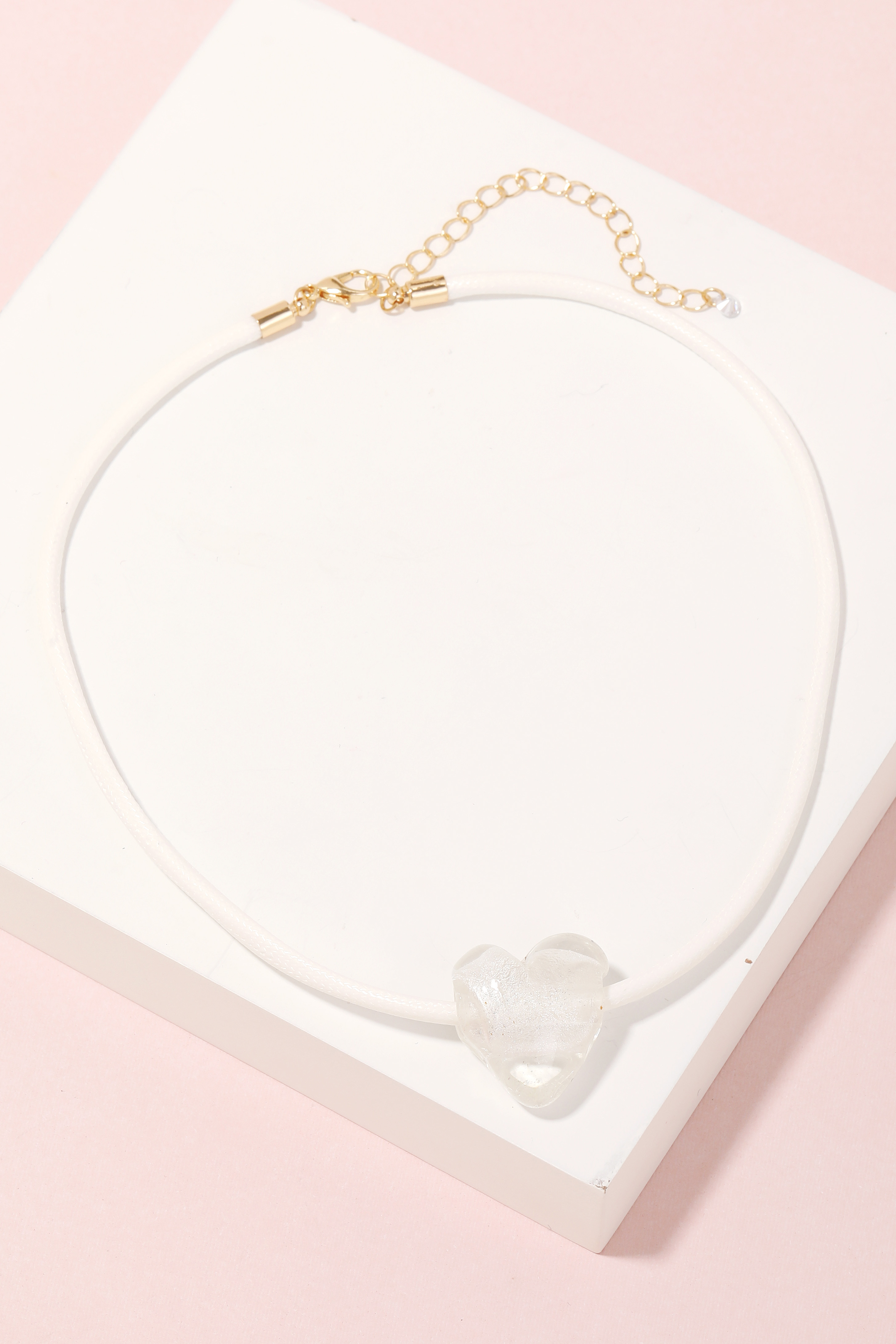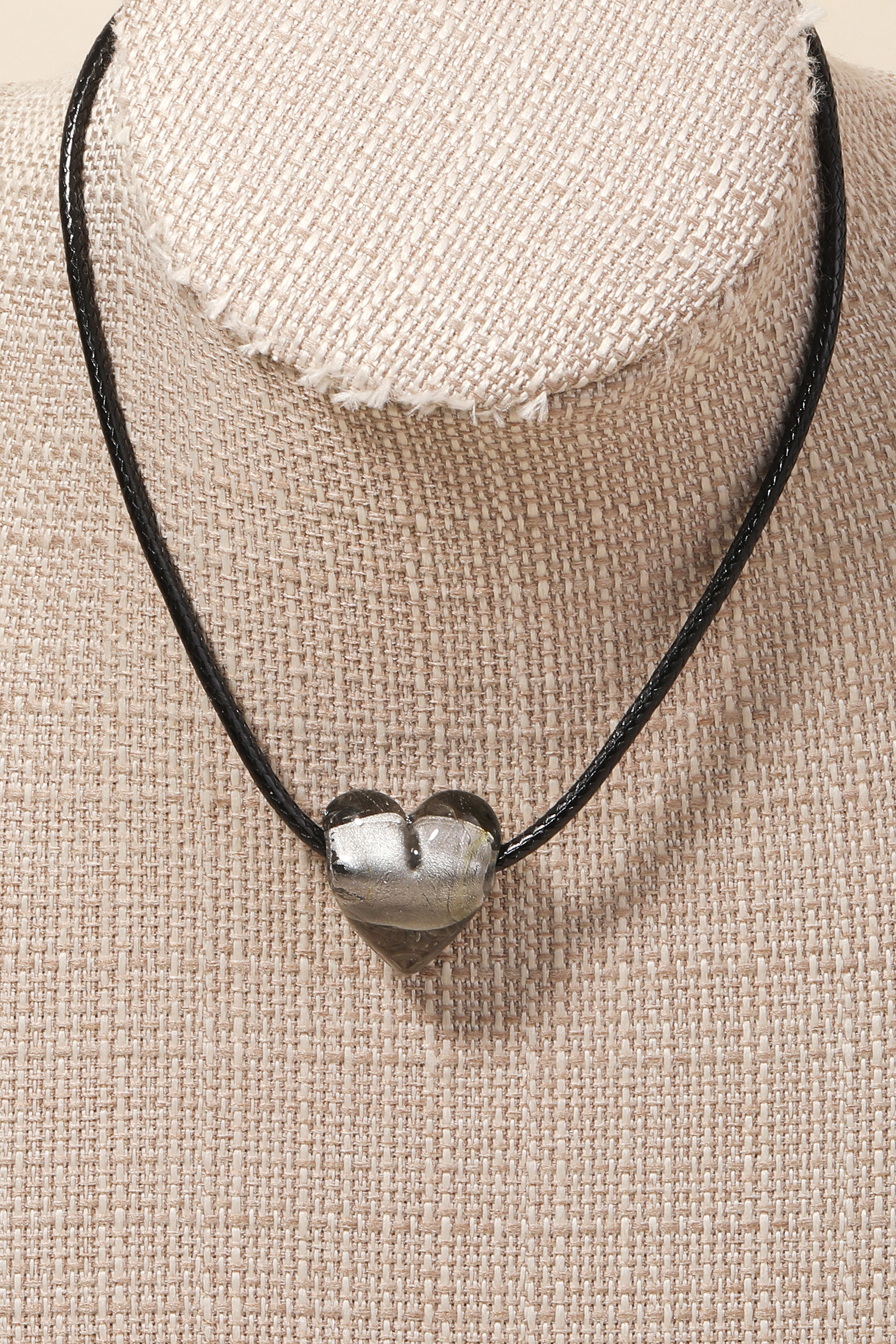 • The perfect way to complete any outfit, this necklace introduces an exceptional resin heart pendant thread necklace design. A must-have accessory that adds a unique flair to any look. Available in BKGY, BN and WT.