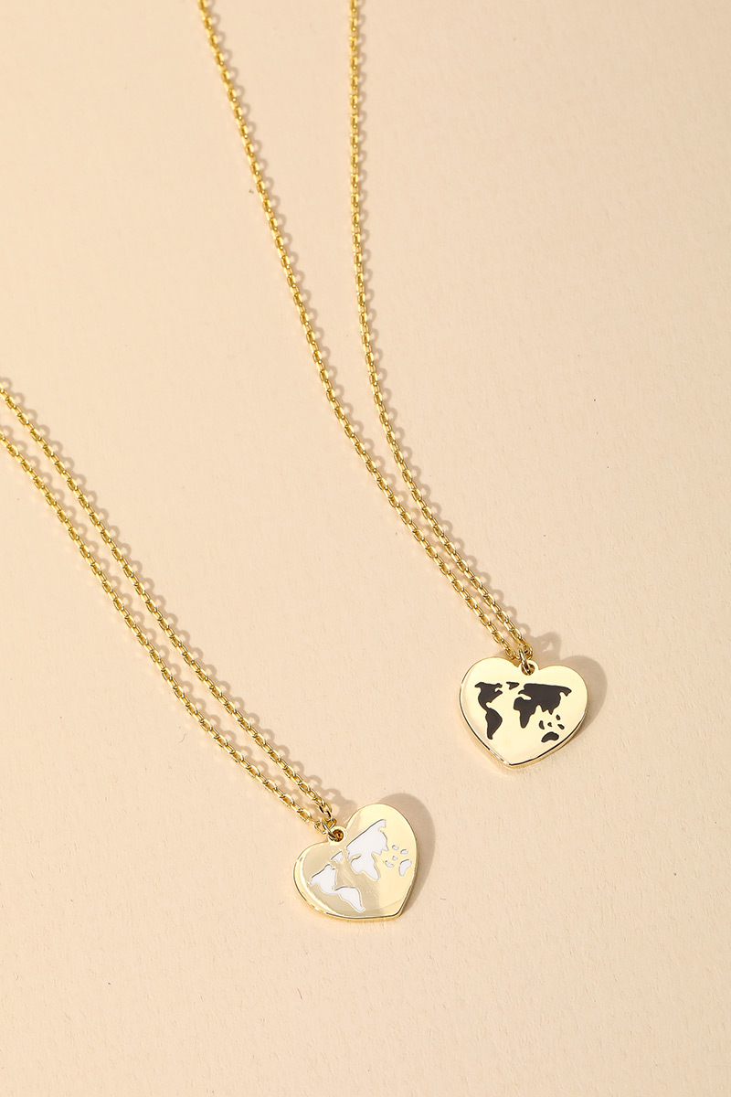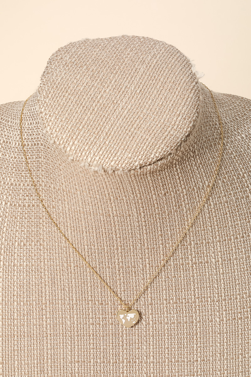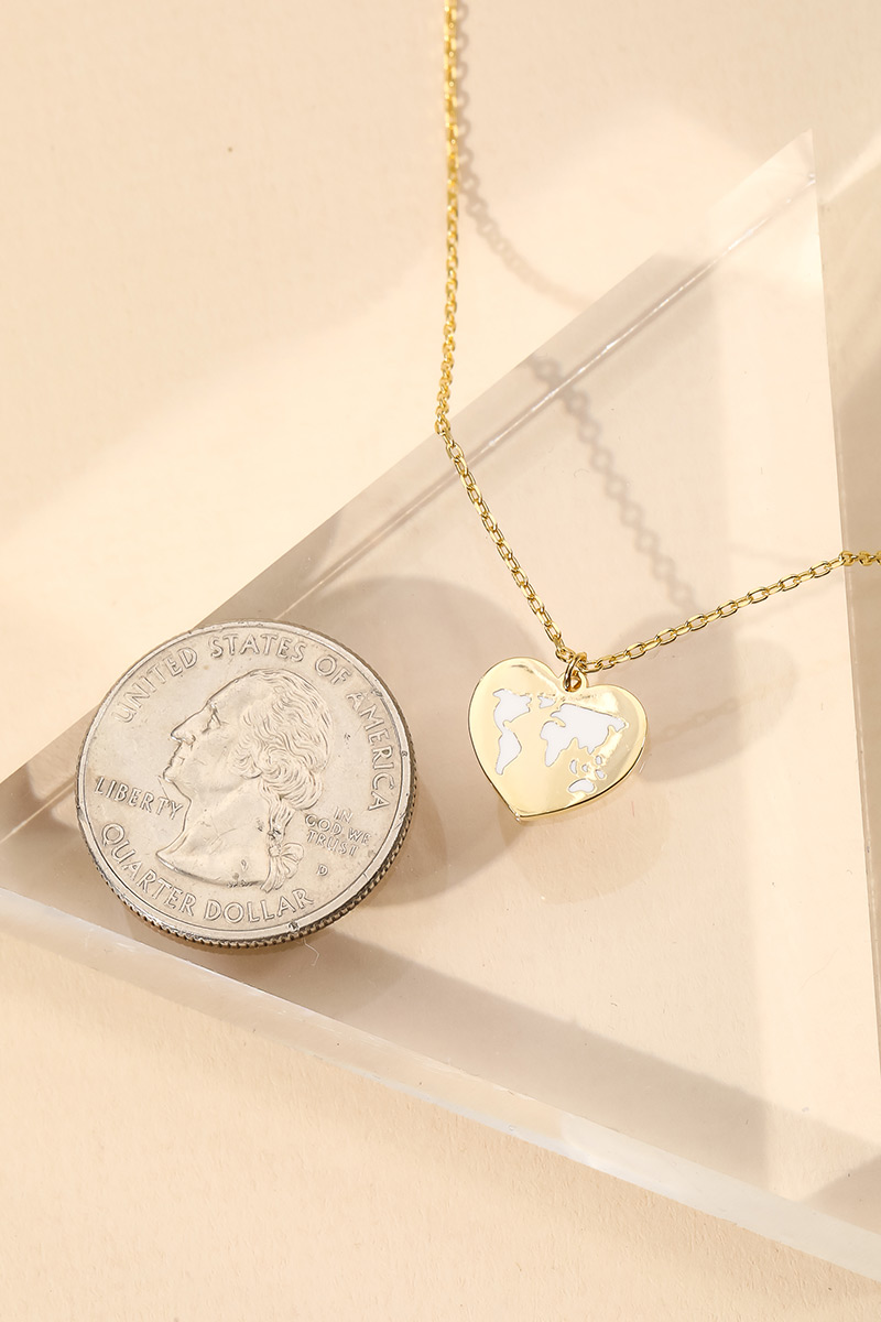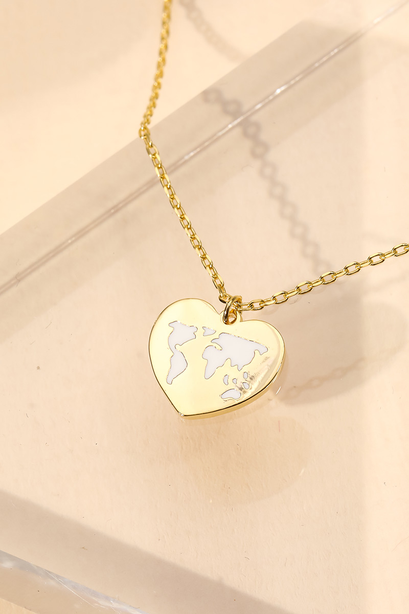 A must have necklace features a beautiful world map heart pendant necklace design. Perfect for the coming winter season. Available in BLK and WHT.