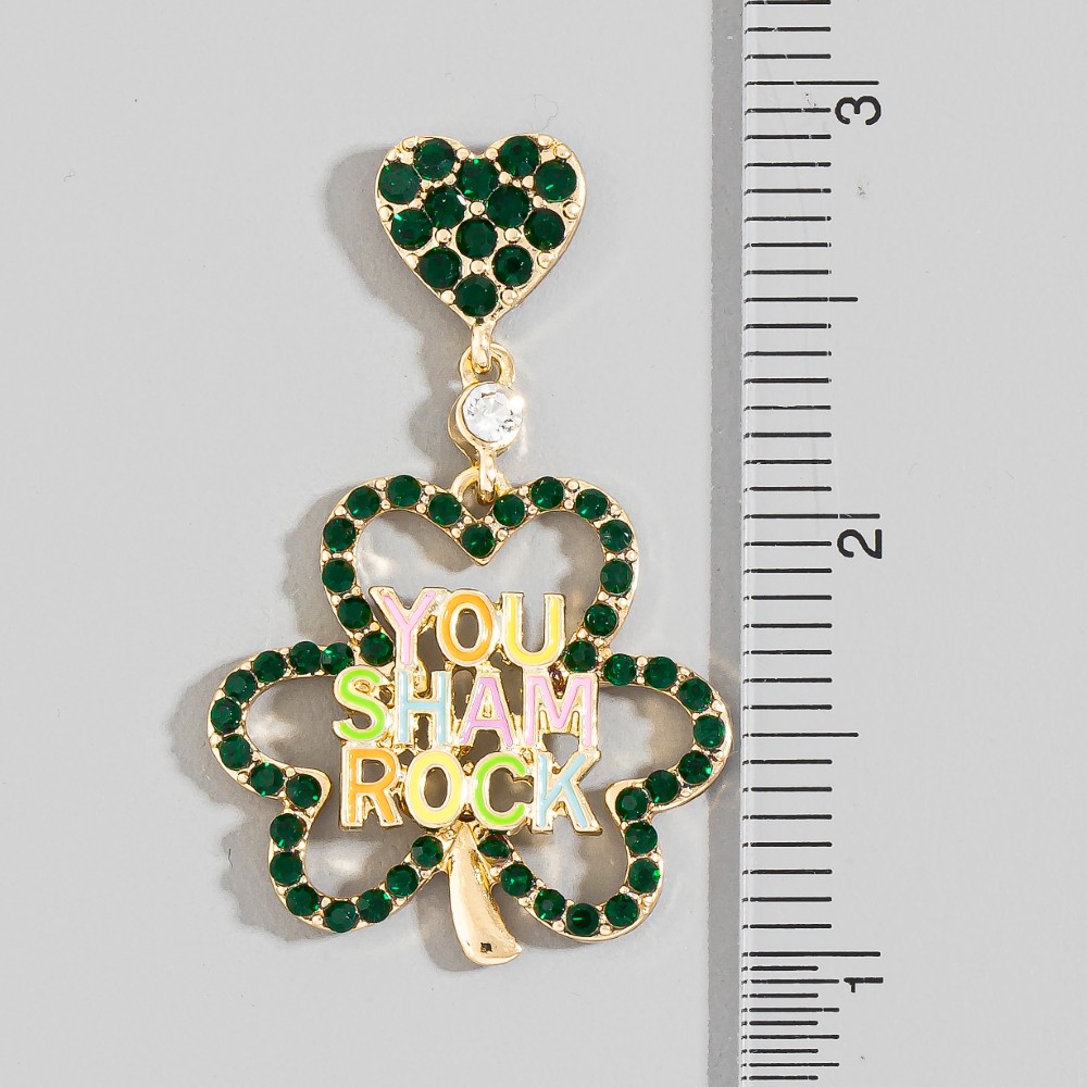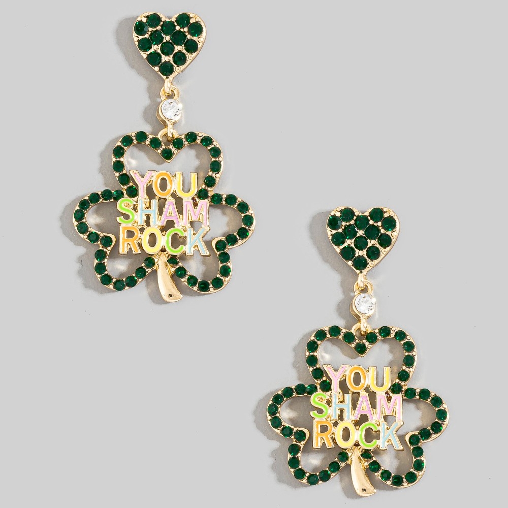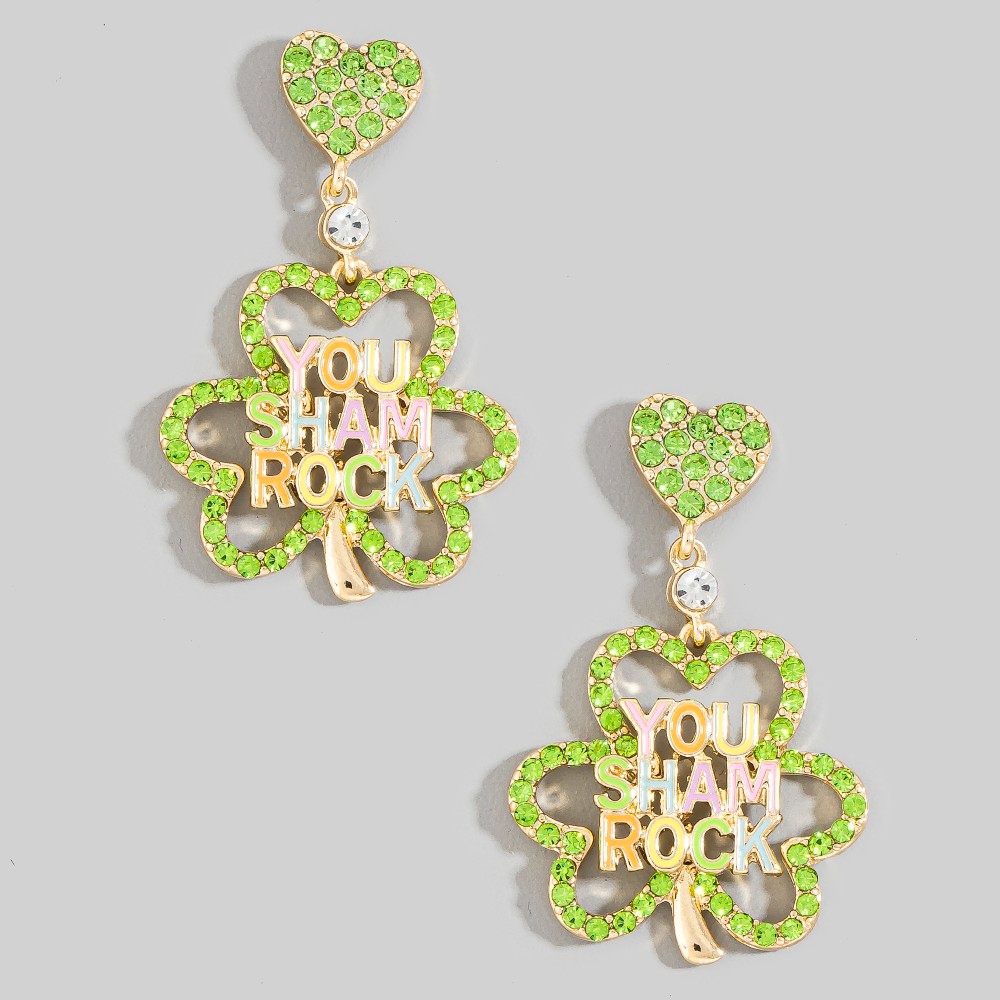 - A classic design with a contemporary twist, this pair of dangle earrings boasts a magnificent you sham rock clover stud design. A versatile pair of dangle earrings that's perfect for any occasion, adding a touch of elegance and style to any outfit. Available in GNG, LGG. This item is sold in packs of 1.