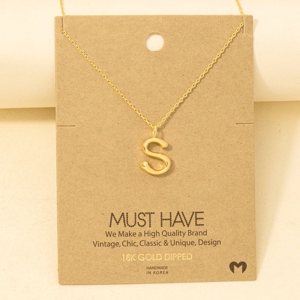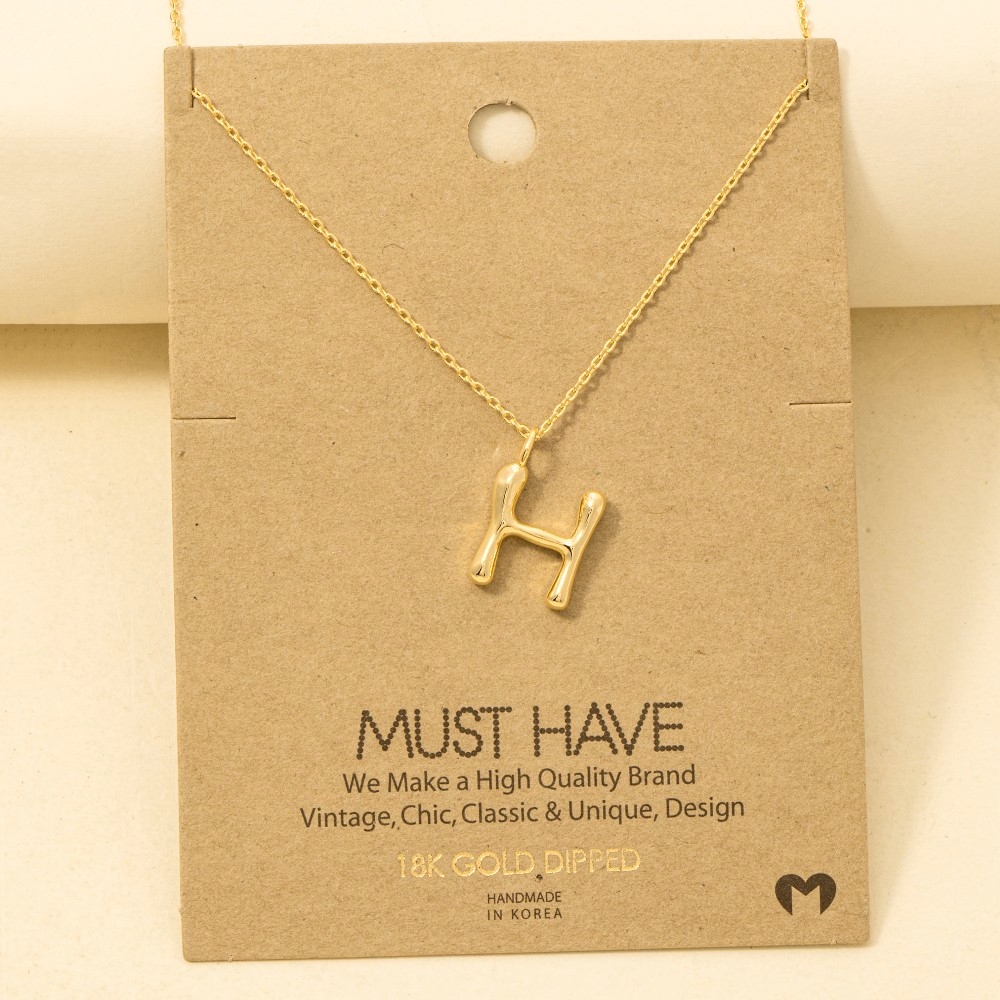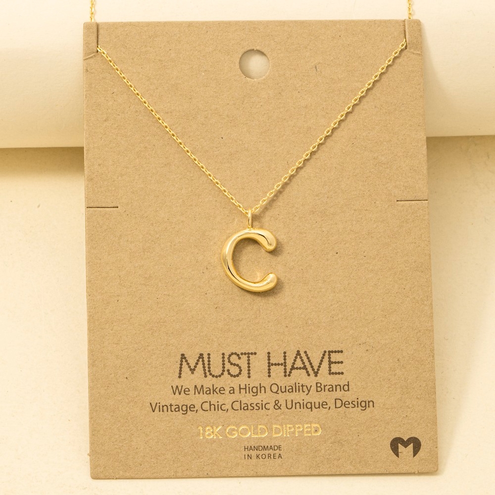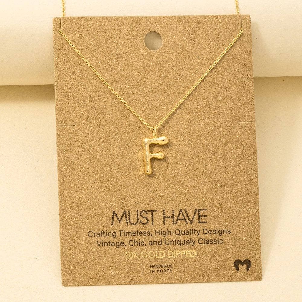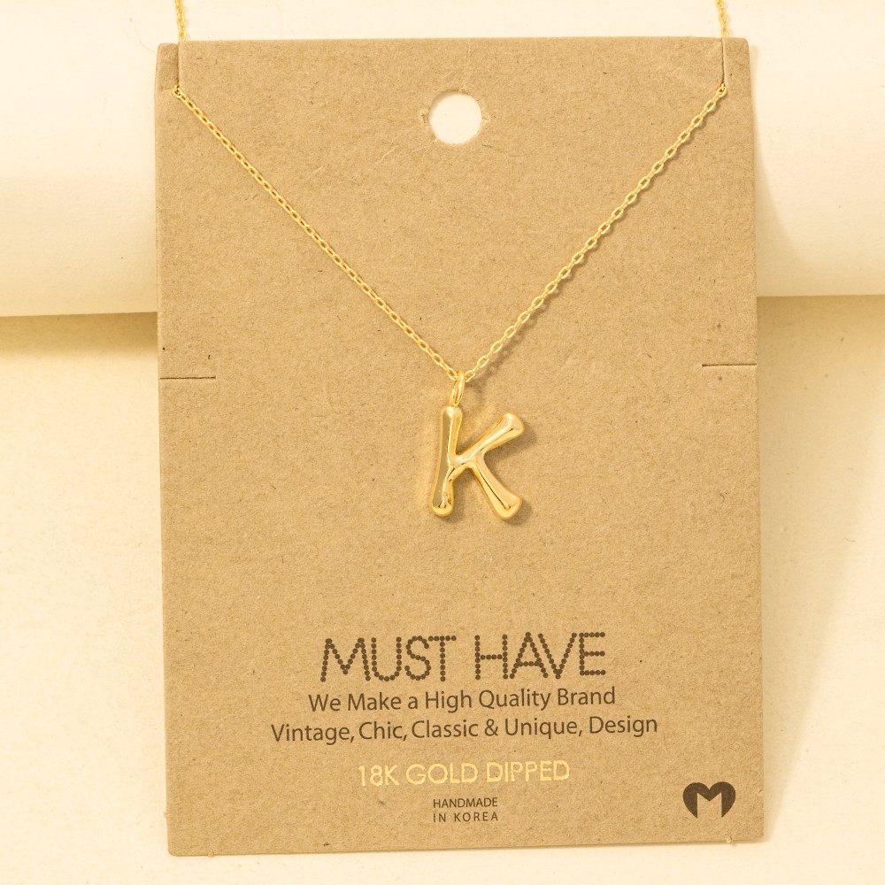 Gold Dipped Bubble Initial Letter Pendant Necklace