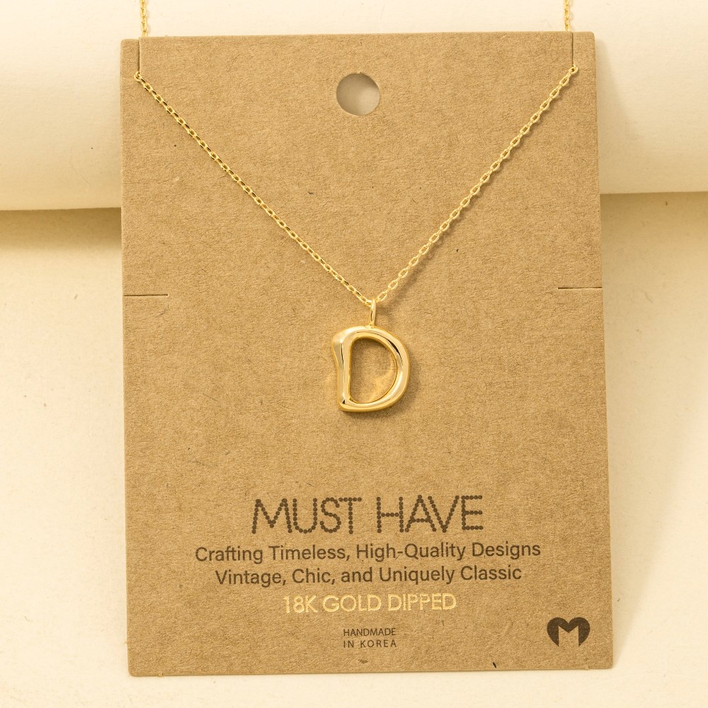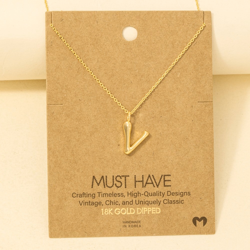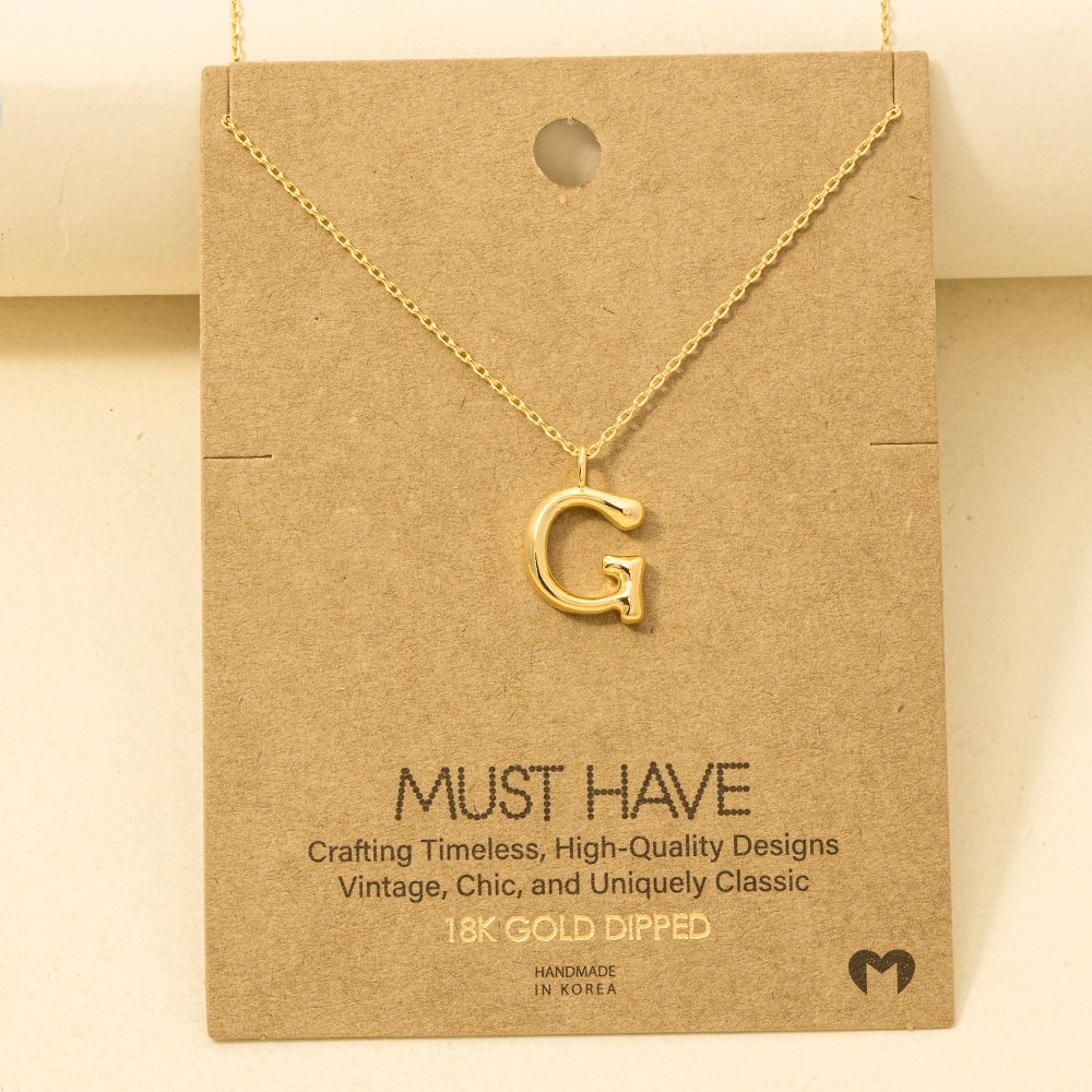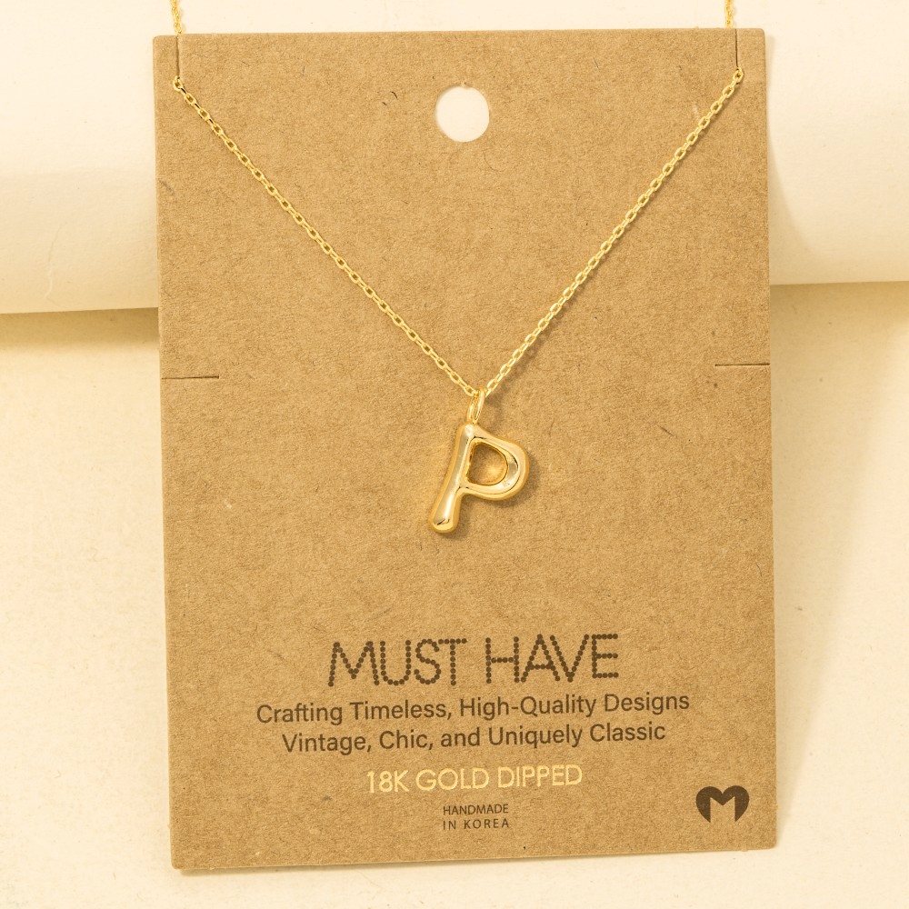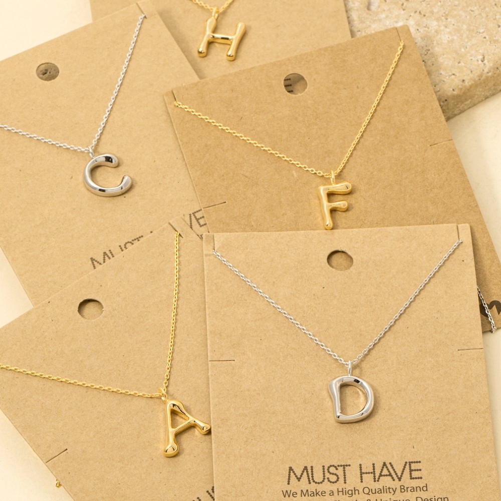 Gold Dipped Bubble Initial Letter Pendant Necklace