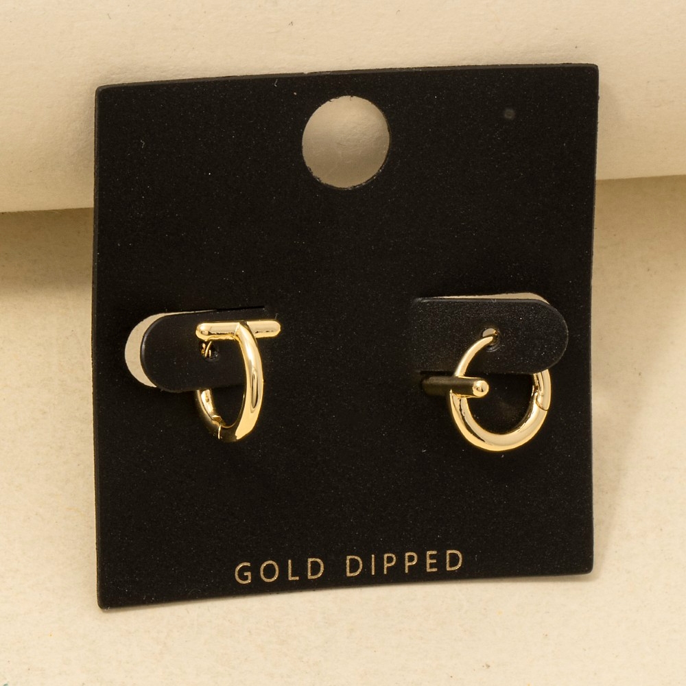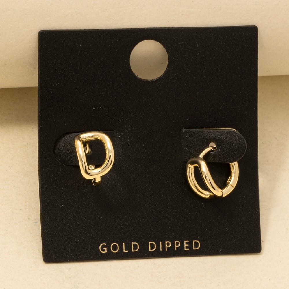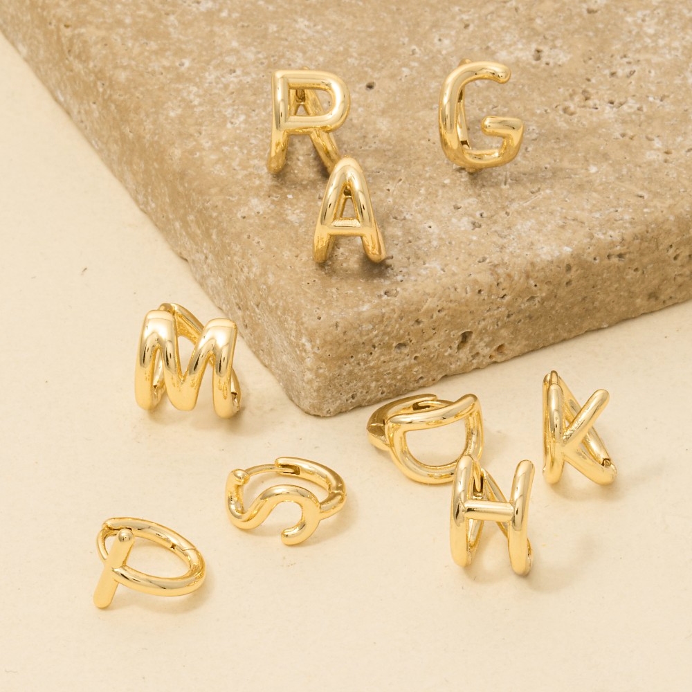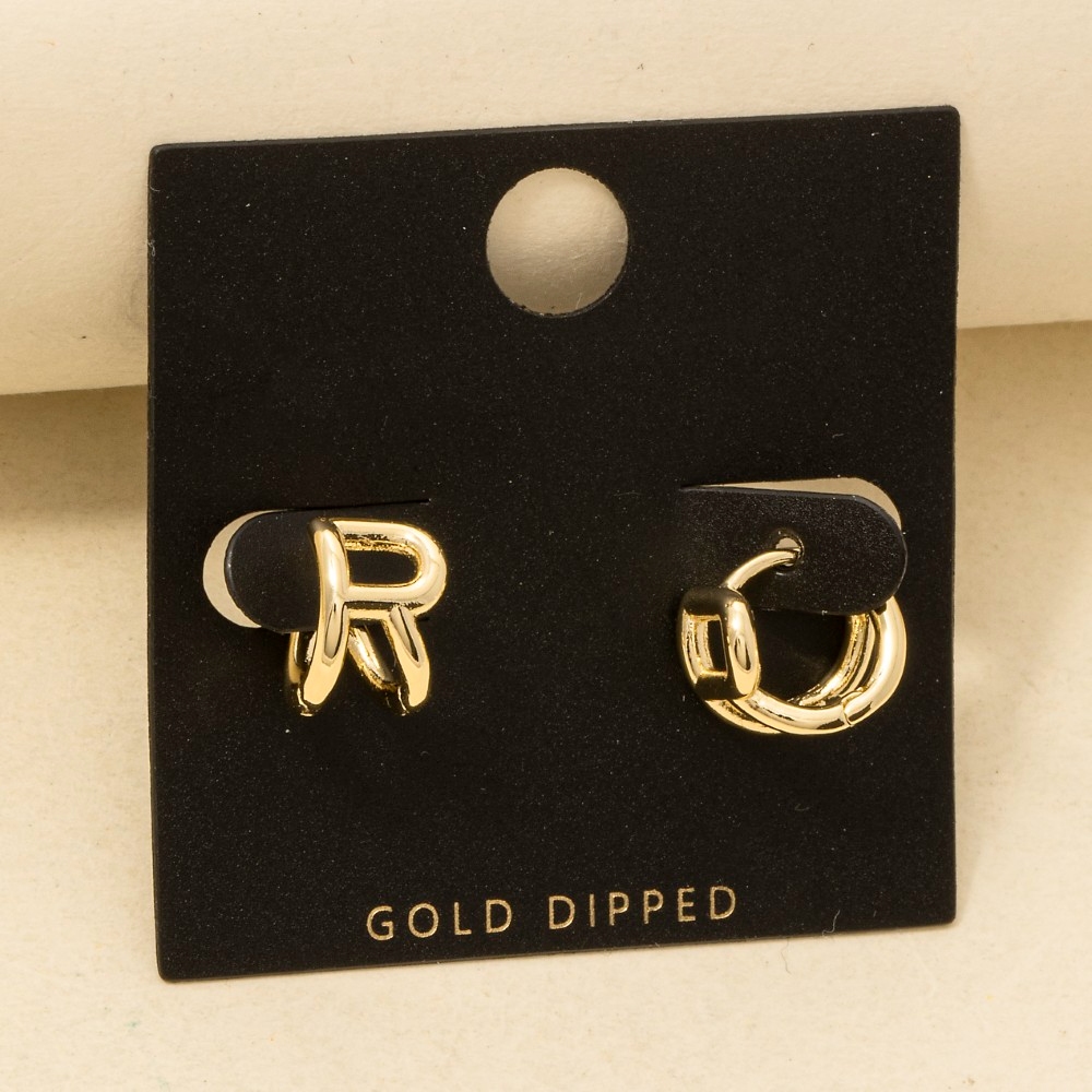• Perfect for any fashion-forward individual, this pair of columbus jewelry hoop earrings presents a striking gold dipped mini initial letter design. This item is ideal for those who want to add some personality to their wardrobe without being too bold. Available in A, B, C, D, G, H, J, K, L, M, N, R, S, T. This item is sold in packs of 1.