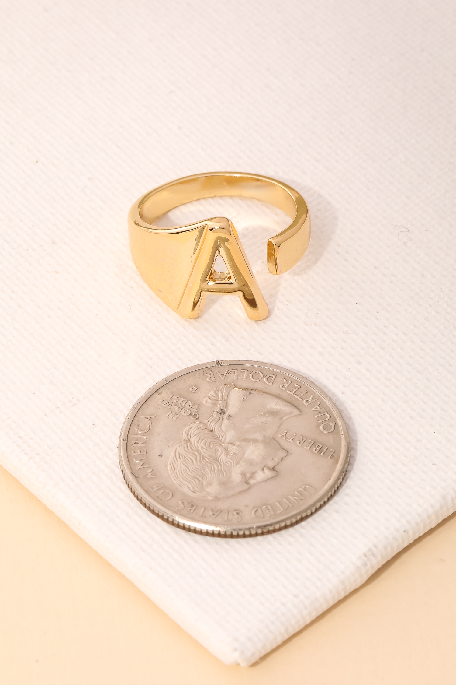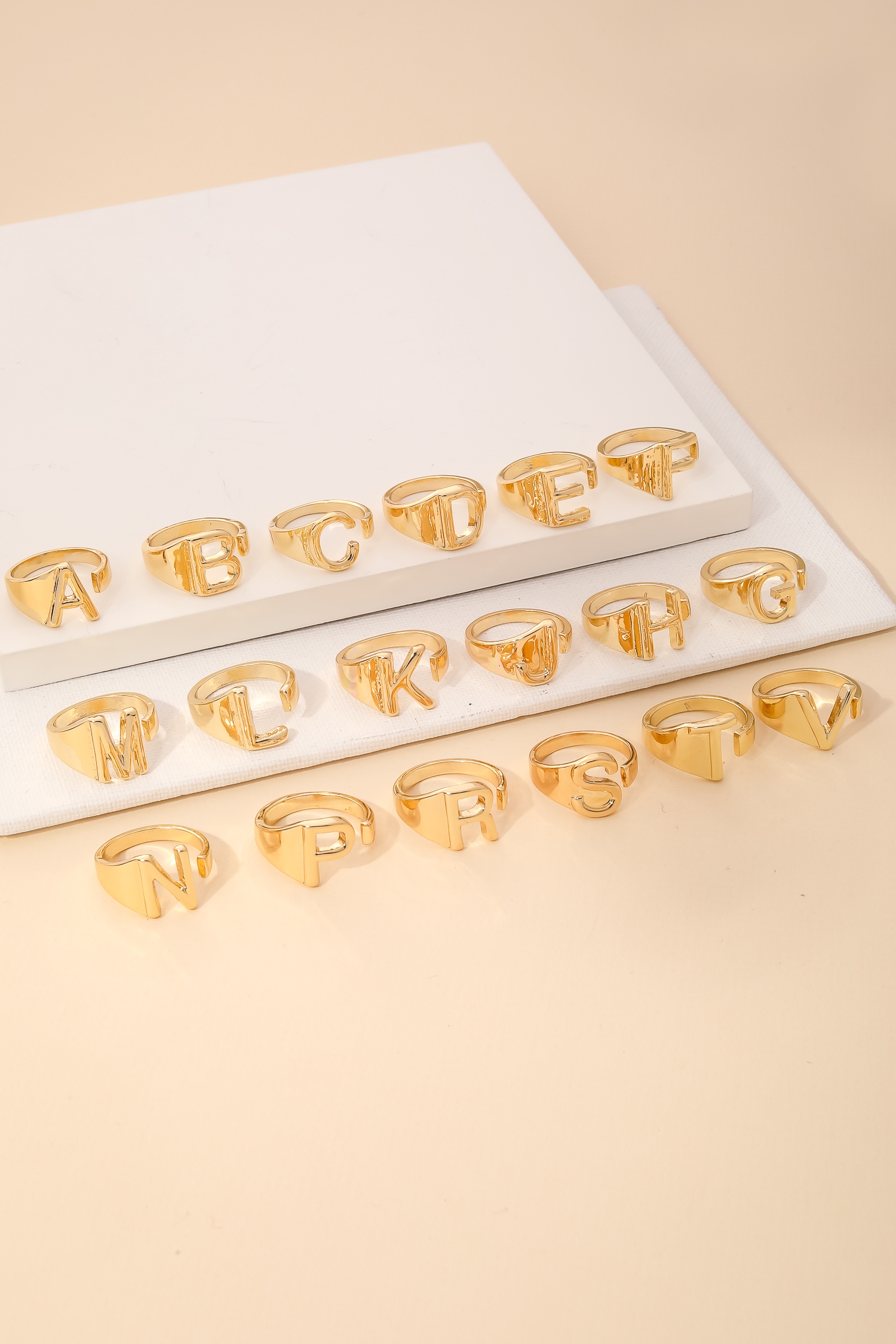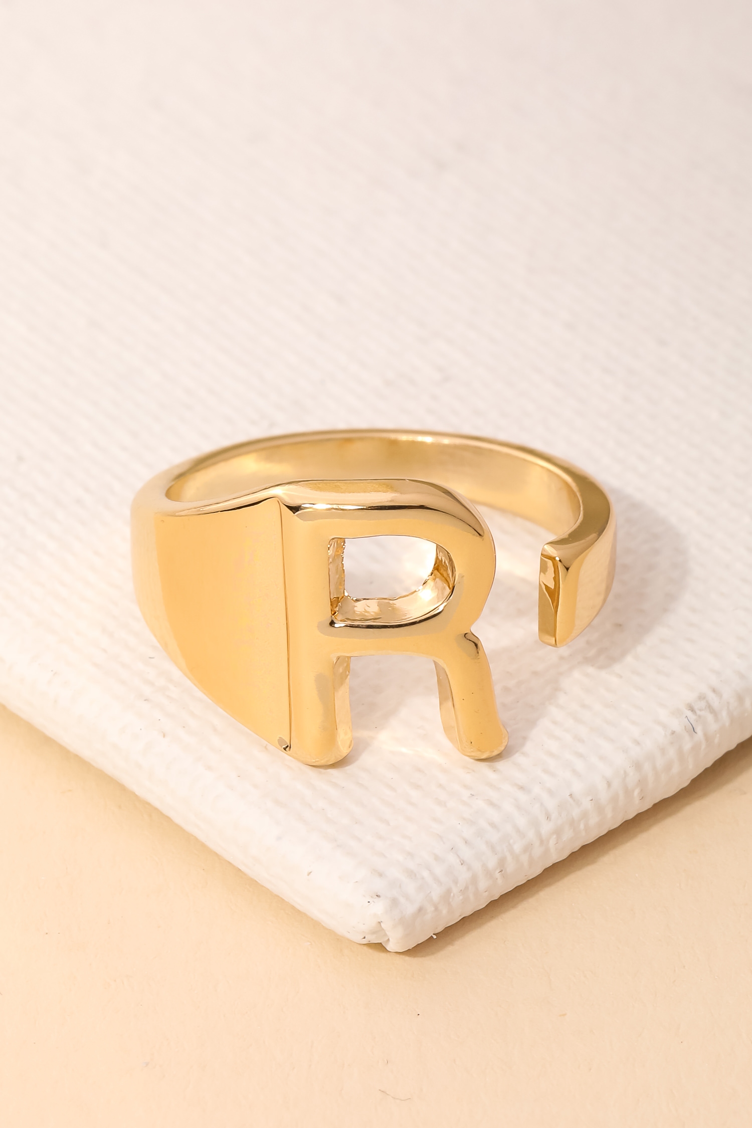 • "This must have trending ring has a beautiful metallic alphabet a ring design. Achieve a perfect blend of style and sophistication with this versatile accessory, a fashion-forward choice for any occasion.