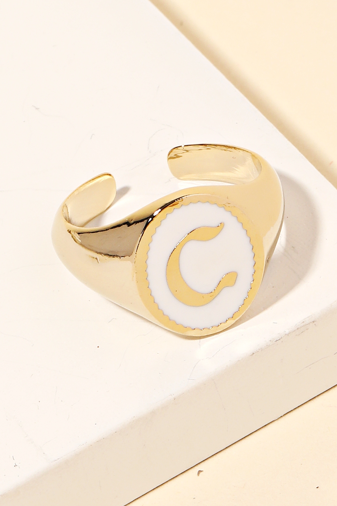 • This is an absolute must have ring created into a gorgeous initial signet ring design. Sleek, modern, and always stylish guaranteed. The perfect way to elevate any outfit. A chic must have for the season!