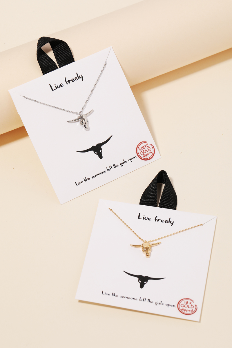 A popular giftable necklace has a unique gold dipped bull head pendant necklace design. Fits beautifully well in any scenario!