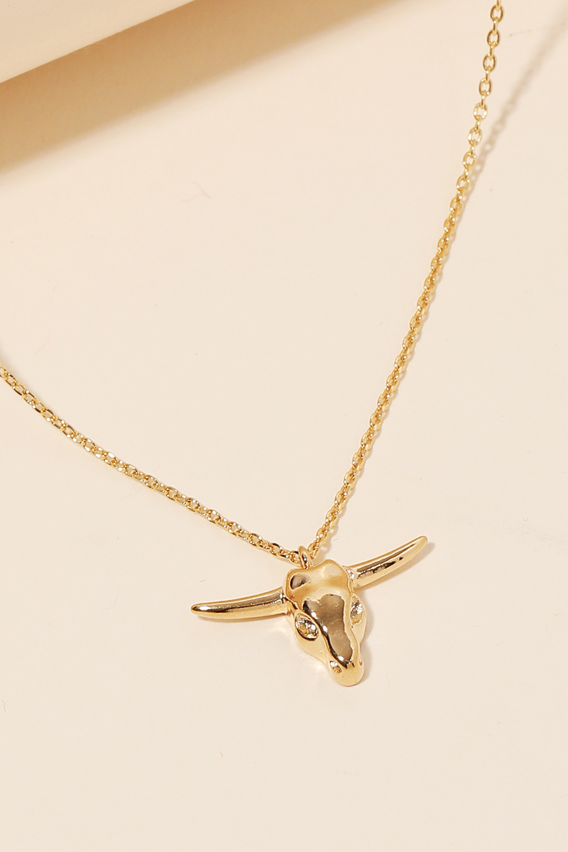 Gold Dipped Bull Head Pendant Necklace