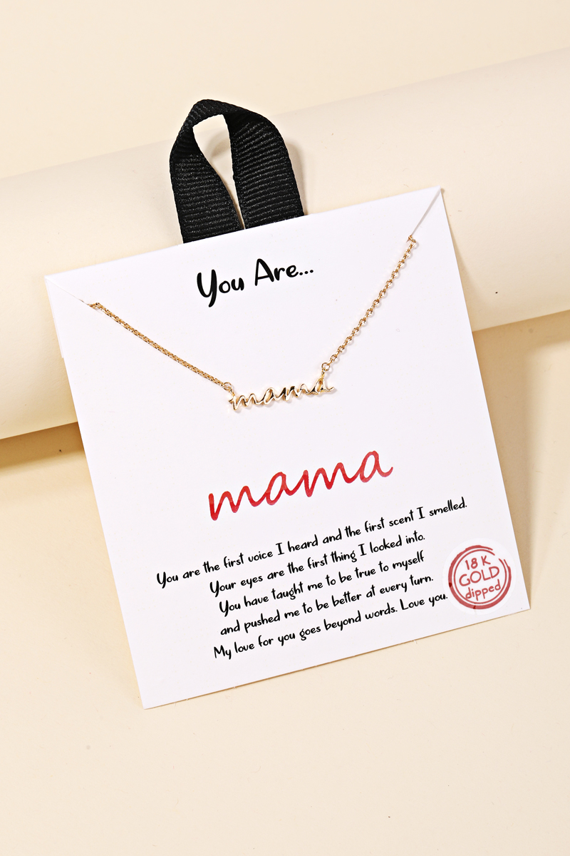 • This gorgeous and absolute must have gold dipped necklace made into a beautiful gold dipped mama pendant necklace design. Perfectly fitting for this Spring season! This item is sold in packs of 1. Made In Korea.