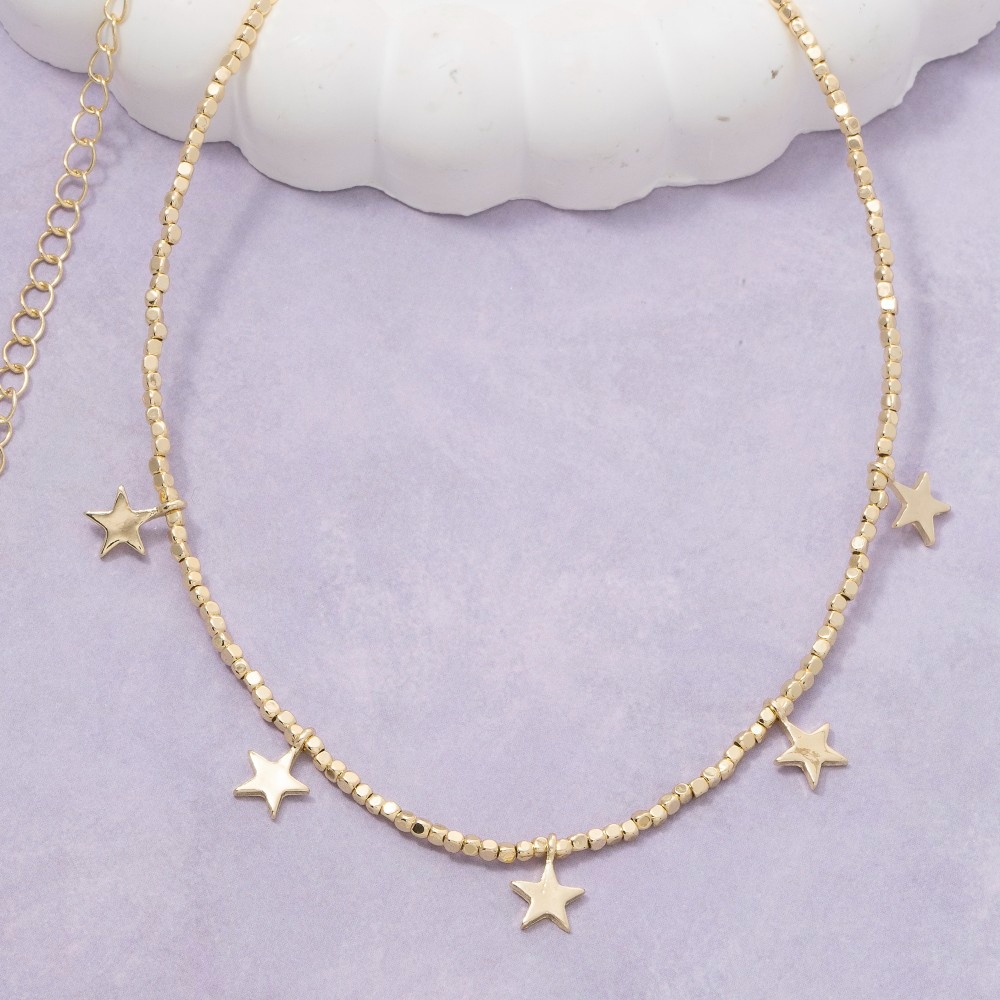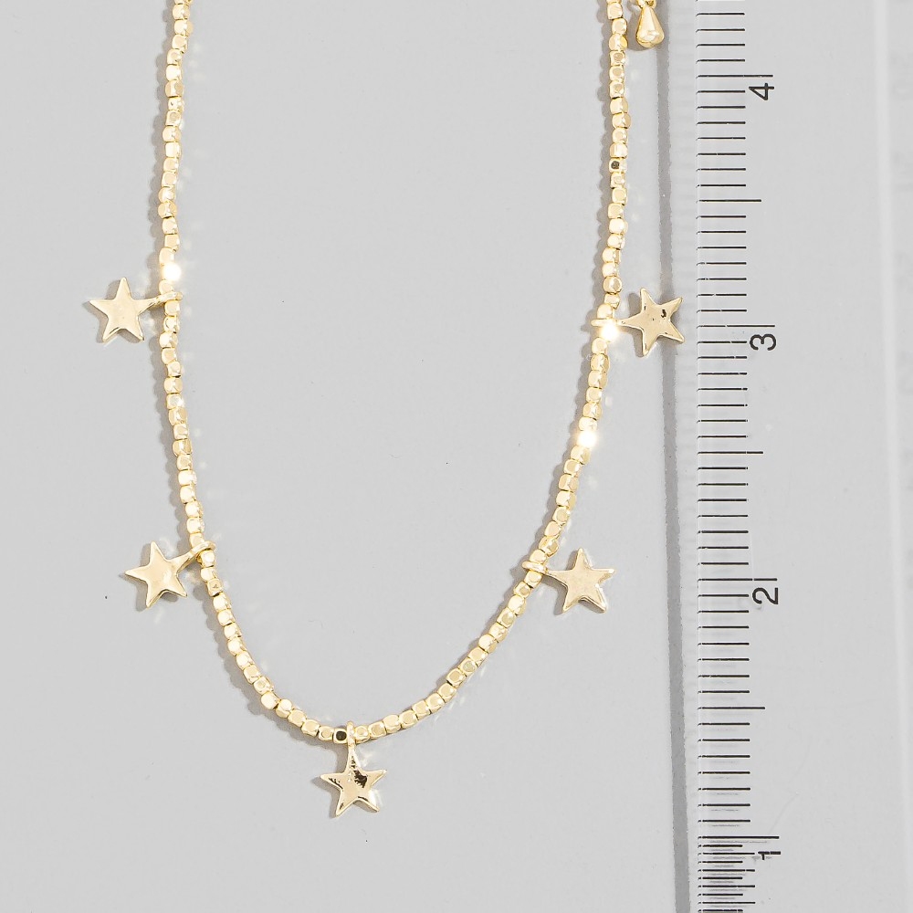 Guaranteed to add a touch of glamour to any outfit, this chain necklace contains a special beaded chain star station necklace design. Unleash the potential of your wardrobe with this versatile chain necklace, ensuring a touch of elegance in every ensemble. Available in GD. This item is sold in packs of 1.