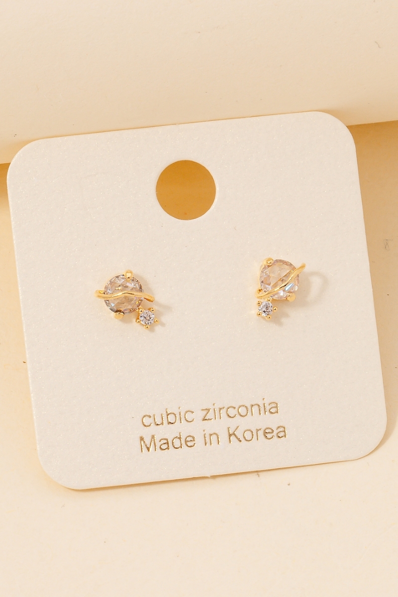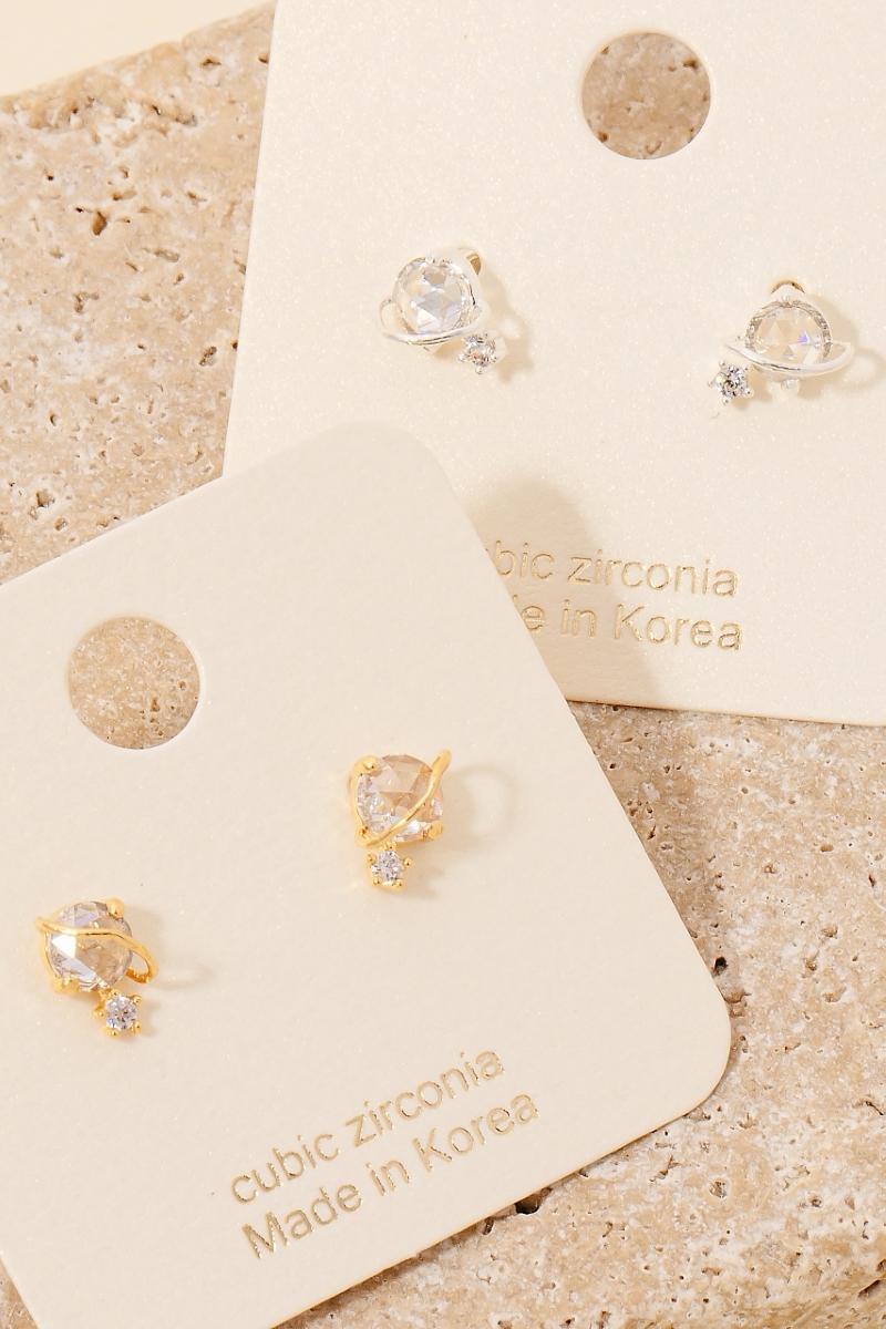 • This pair of stud earrings displays a vibrant cz planet and moon style. Immerse yourself in the details of design, as this pair of stud earrings effortlessly becomes a conversation starter.