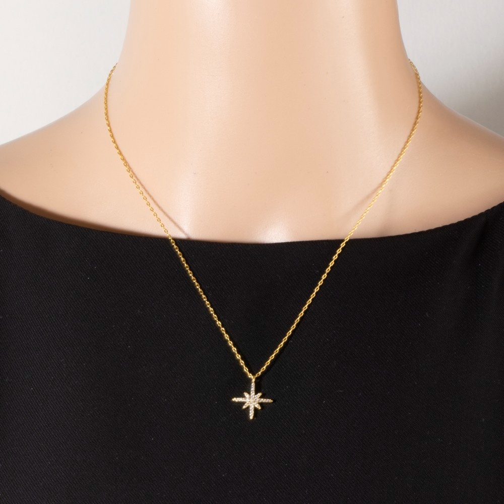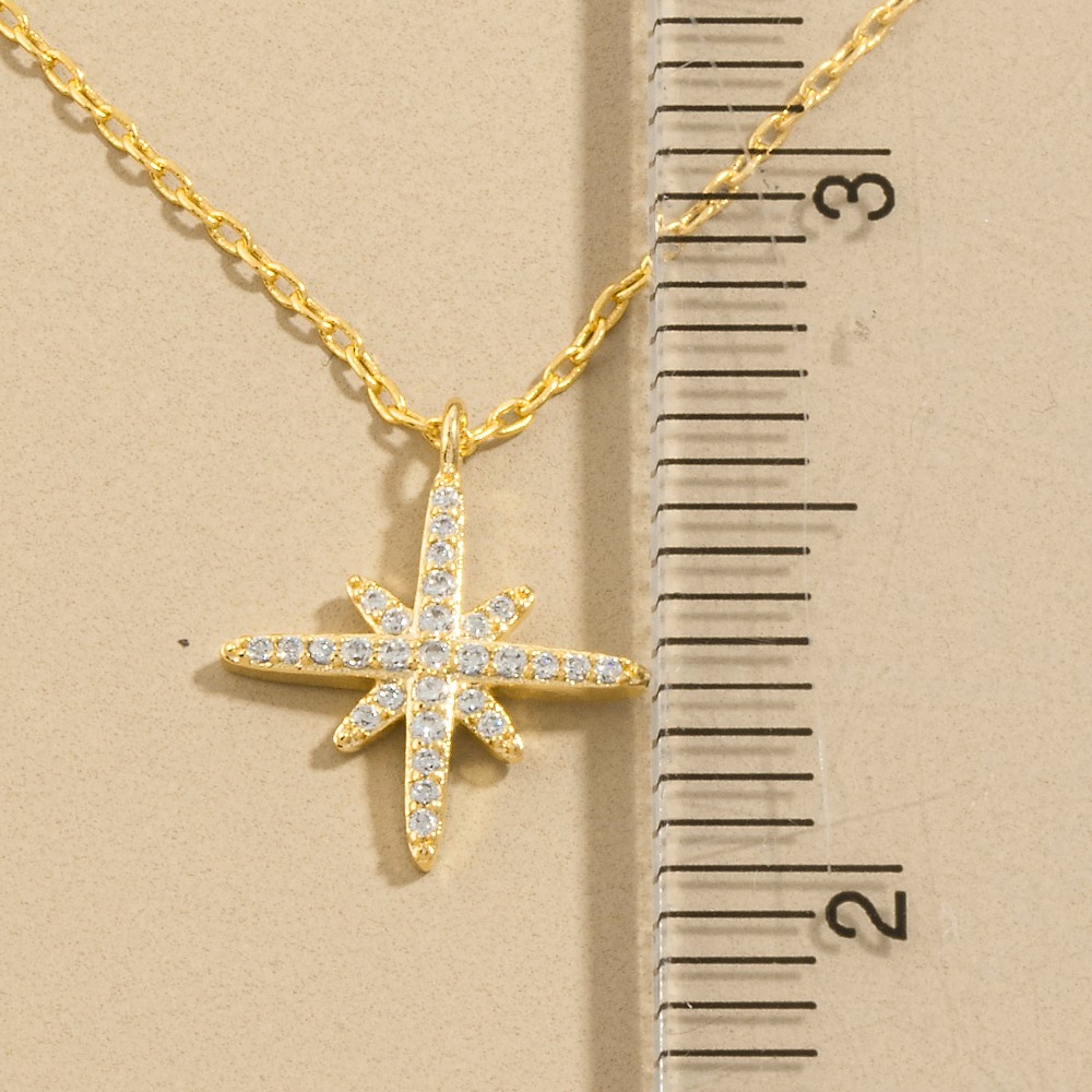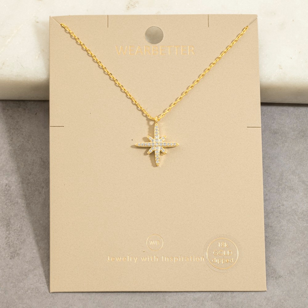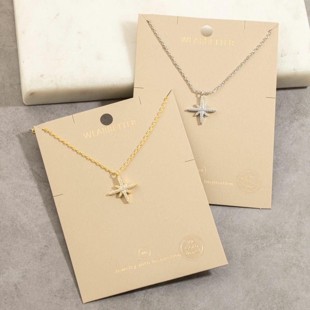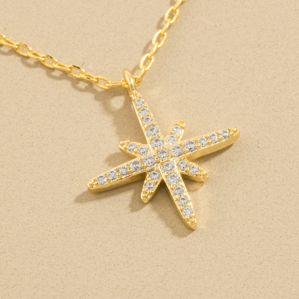 • Perfect for any fashion-forward individual, this pendant necklace adds a distinctive gold dipped cubic zirconia pave north star design. A must-have pendant necklace that adds a unique flair to any look. Available in G, S. This item is sold in packs of 1.