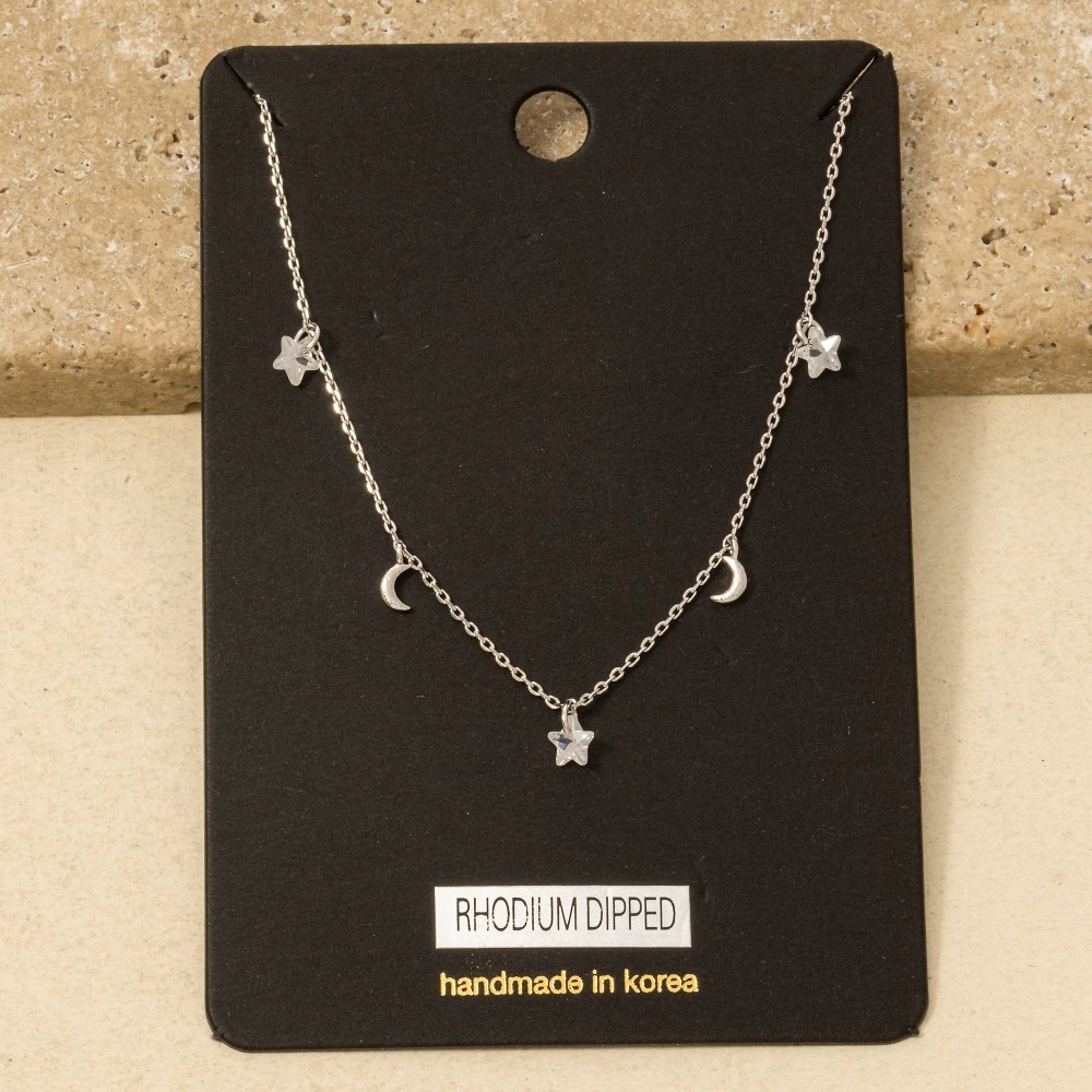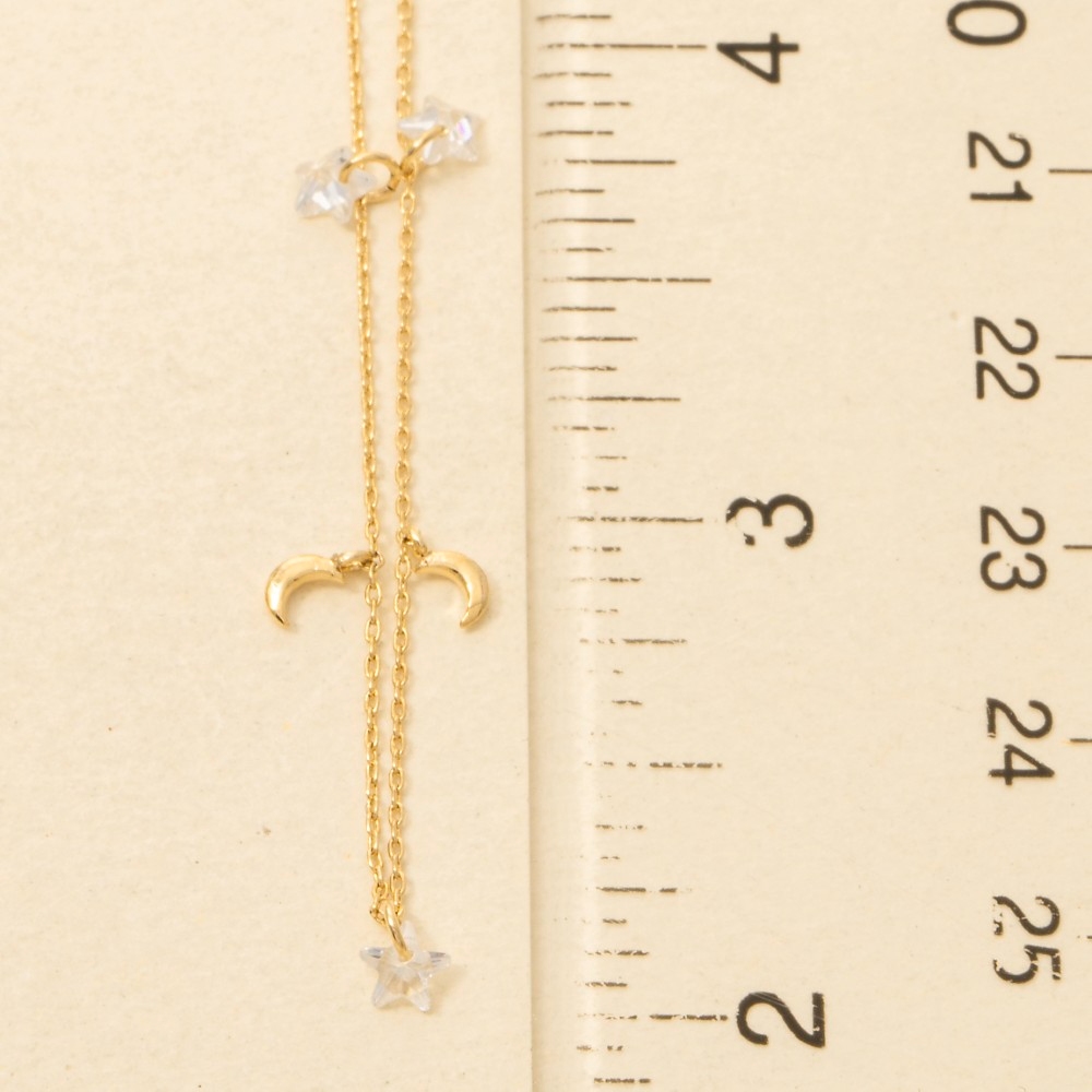 • A must-have addition to any necklace collection, this necklace presents a striking gold dipped cubic zirconia star moon station design. This item is perfect for adding some color and vibrancy to any outfit. Available in G, S. This item is sold in packs of 1.