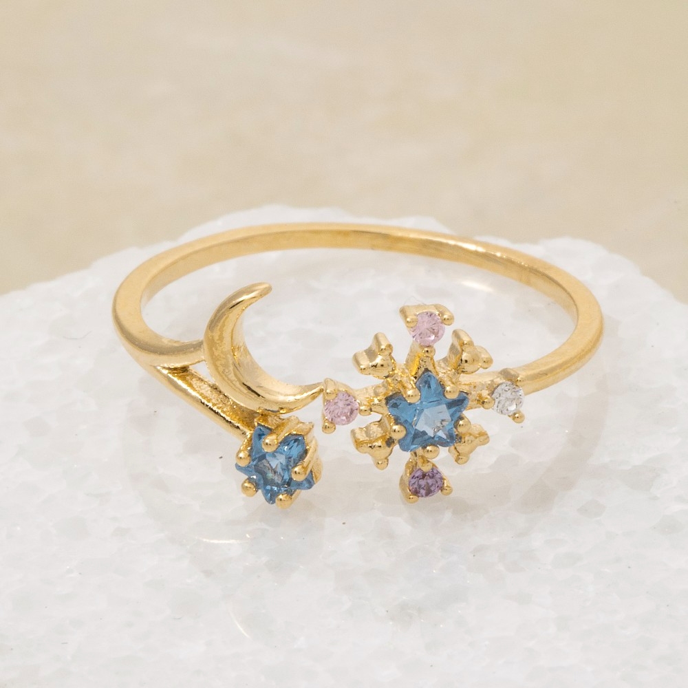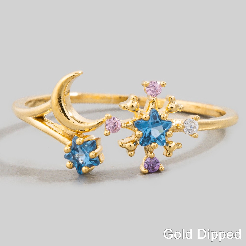 Gold Dipped Cz Moon And Stars Open Band Ring