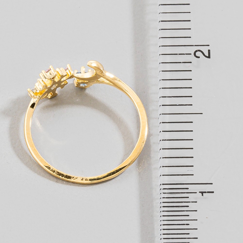 Gold Dipped Cz Moon Star And Butterfly Ring