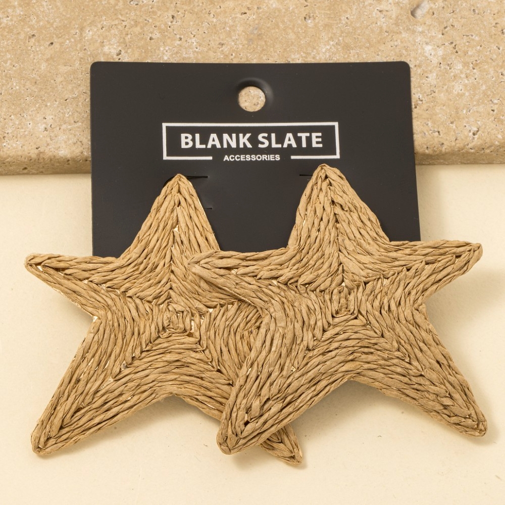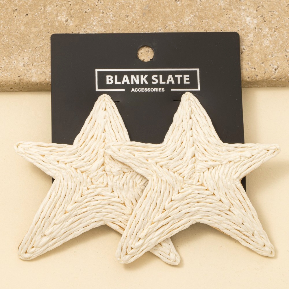 • A contemporary masterpiece, this pair of stud earrings brings a one-of-a-kind large straw weave star design. Unleash the power of style with this versatile pair of stud earrings, perfect for enhancing the charm of your wardrobe. Available in IV, KA. This item is sold in packs of 1.
