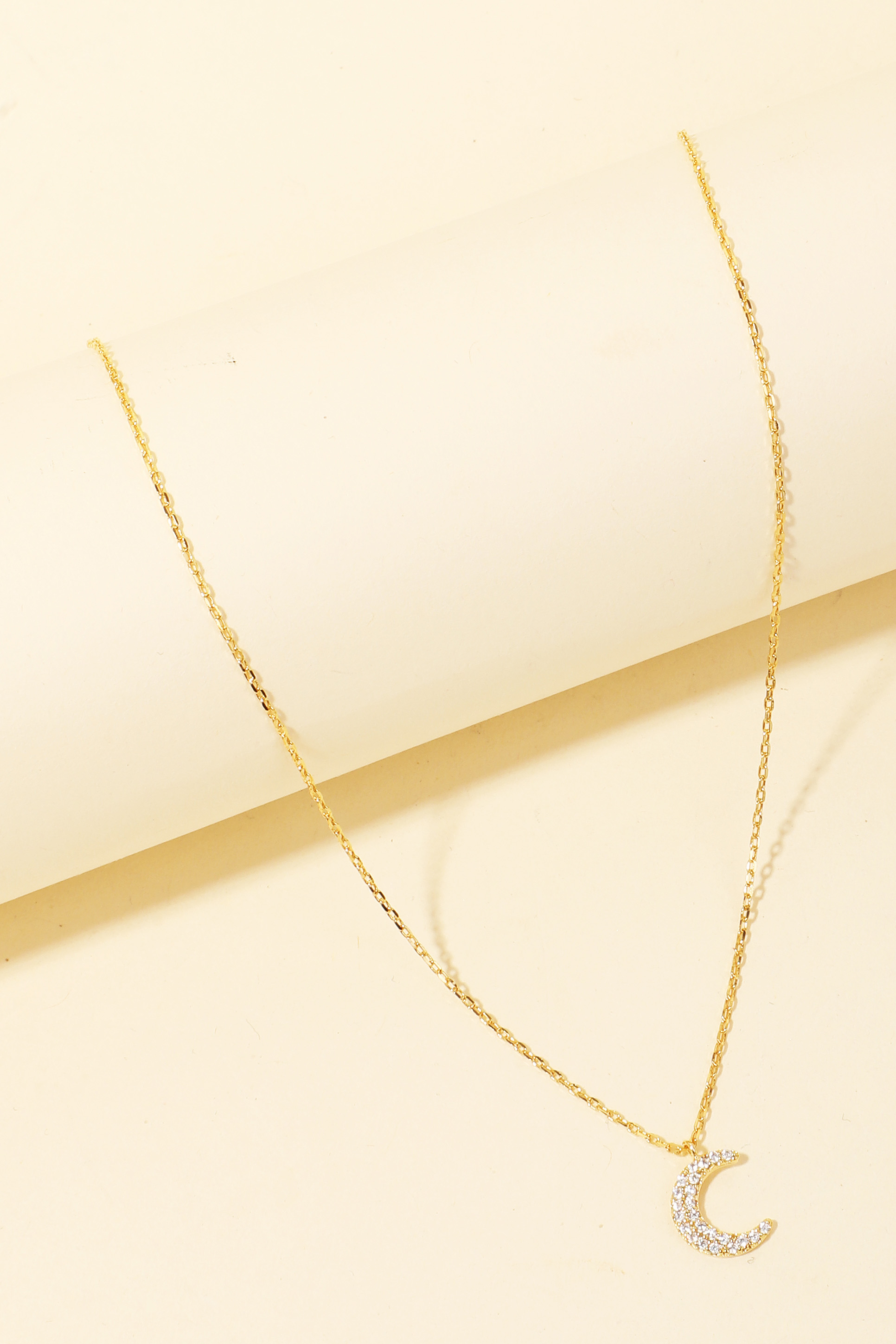 - Make a statement, this chain necklace features a distinct cz pave moon pendant design. The perfect accessory for completing any outfit, whether you're dressing up or keeping it casual. Available in G and S. This item is sold in packs of 1.