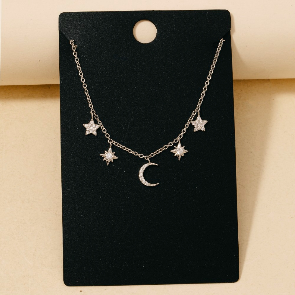 - This piece is designed to be both stylish and functional, this chain necklace contains a special gold dipped cubic zirconia pave star and moon charms design. Transform your outfit from ordinary to extraordinary with the touch of elegance provided by this versatile chain necklace. Available in GOLD,2SILVER. This item is sold in packs of 1.