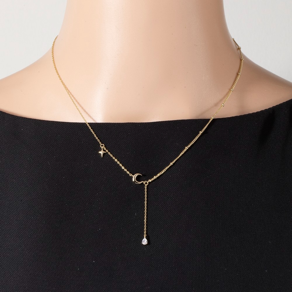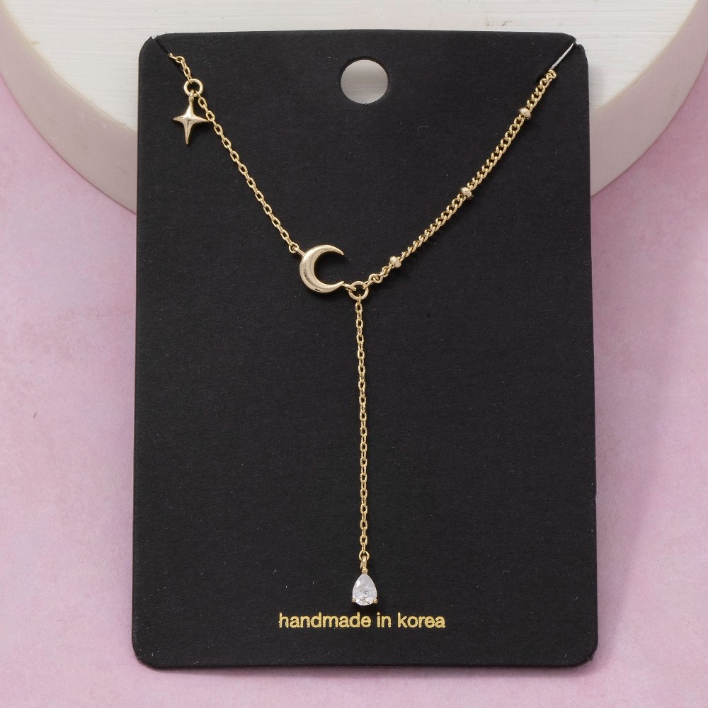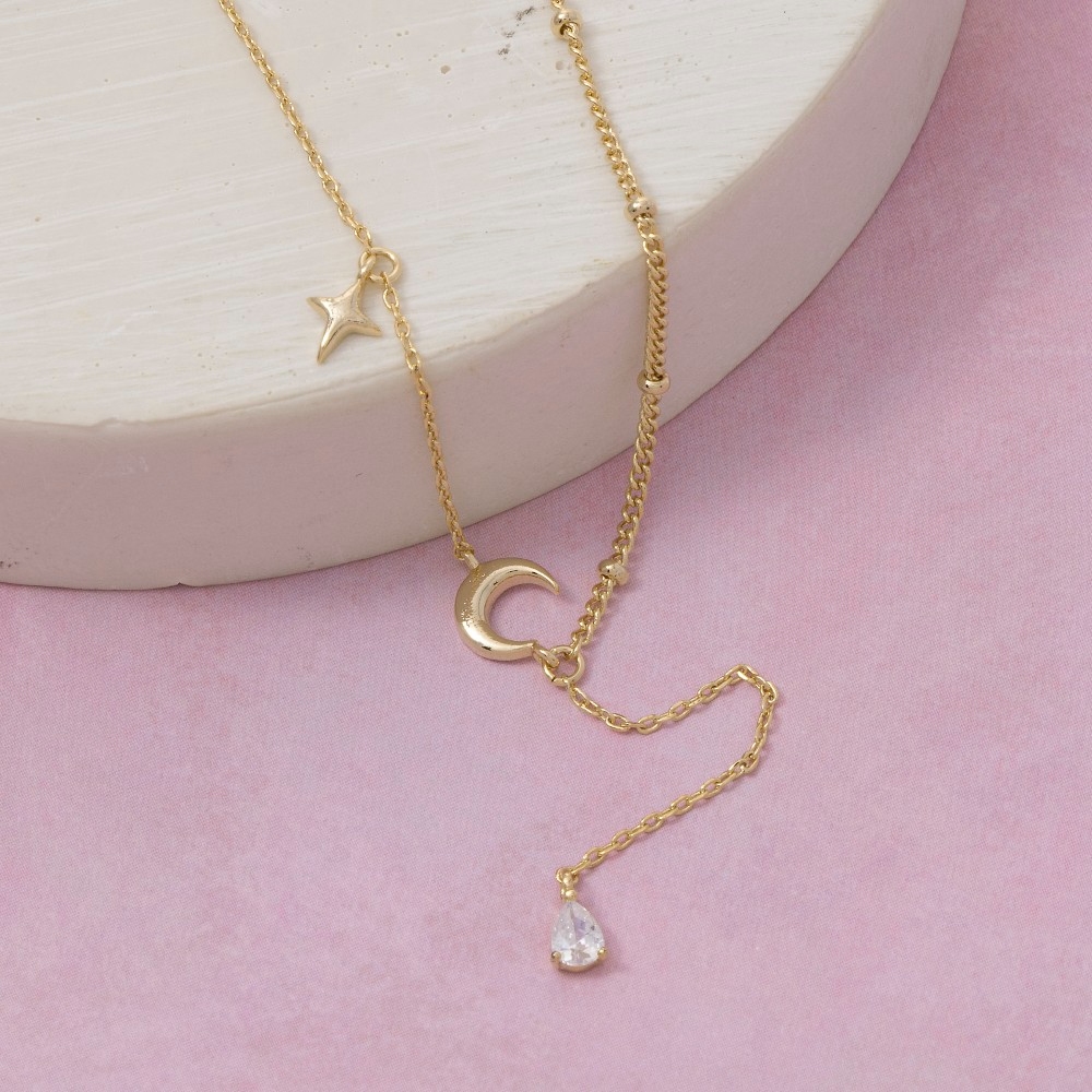 Cz Moon Star Teardrop Charm Y Necklace
