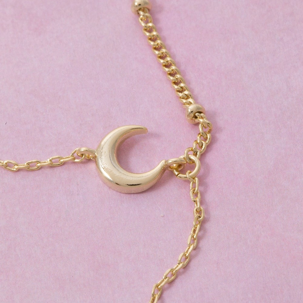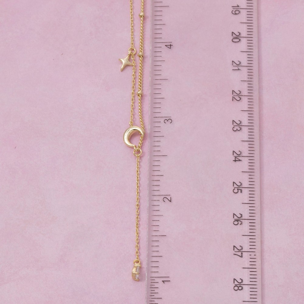 • This piece is both timeless and on-trend, this necklace emanates an elegant moon and star cubic zirconia charm y design. Upgrade your fashion game with this versatile necklace, a timeless addition that complements any outfit seamlessly. Available in G. This item is sold in packs of 1.