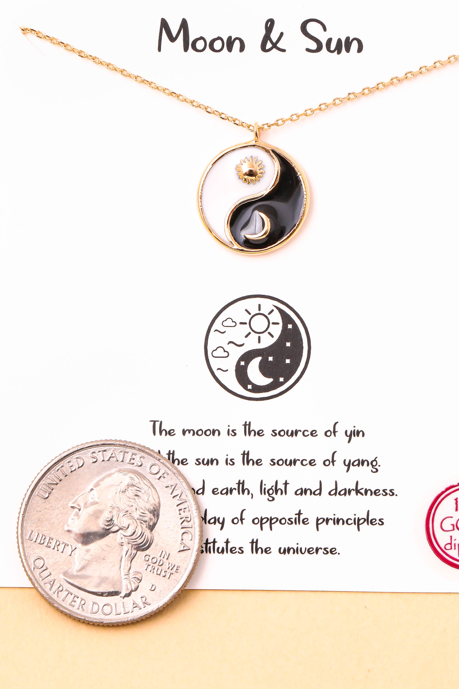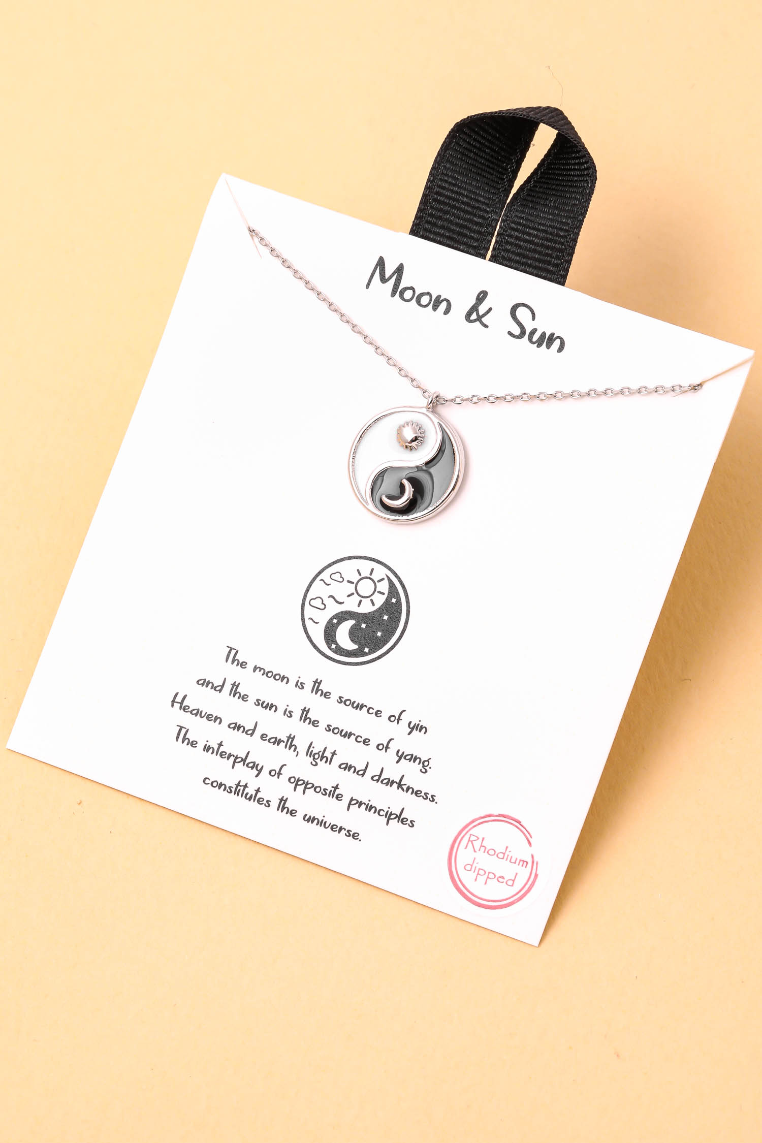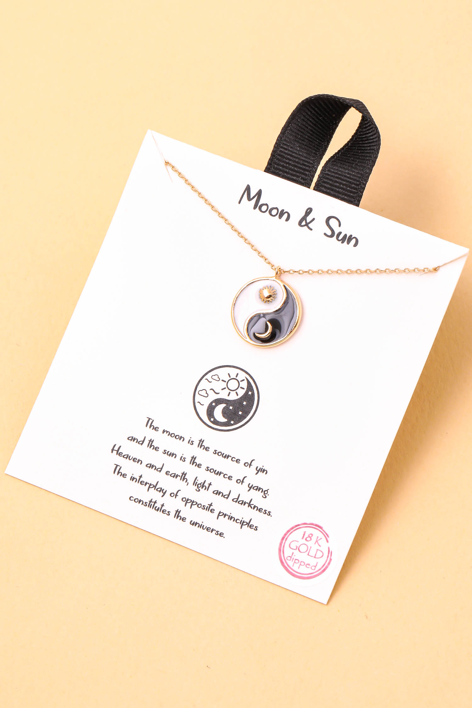 • "This new must have trending necklace features a unique ying yang sun moon pendant necklace design. Adds a chic touch to any outfit! Available in G and S. "