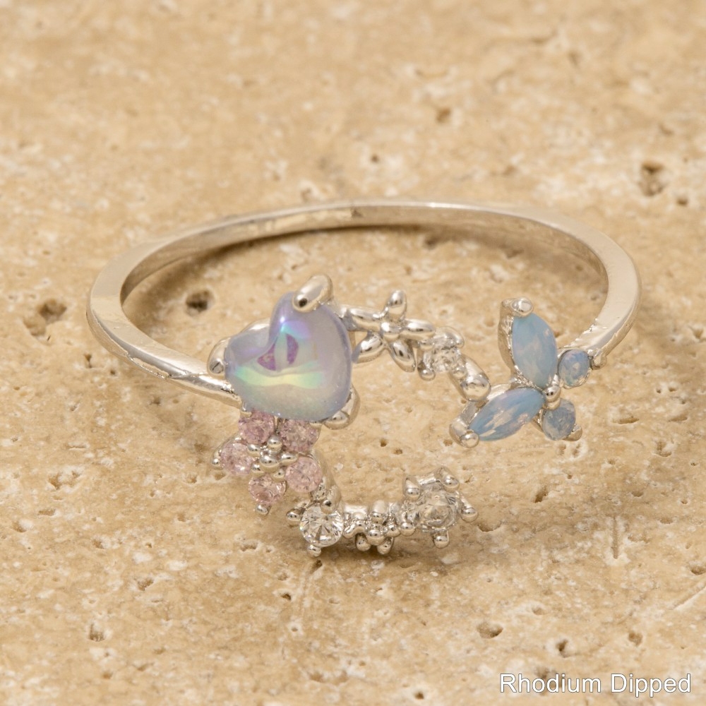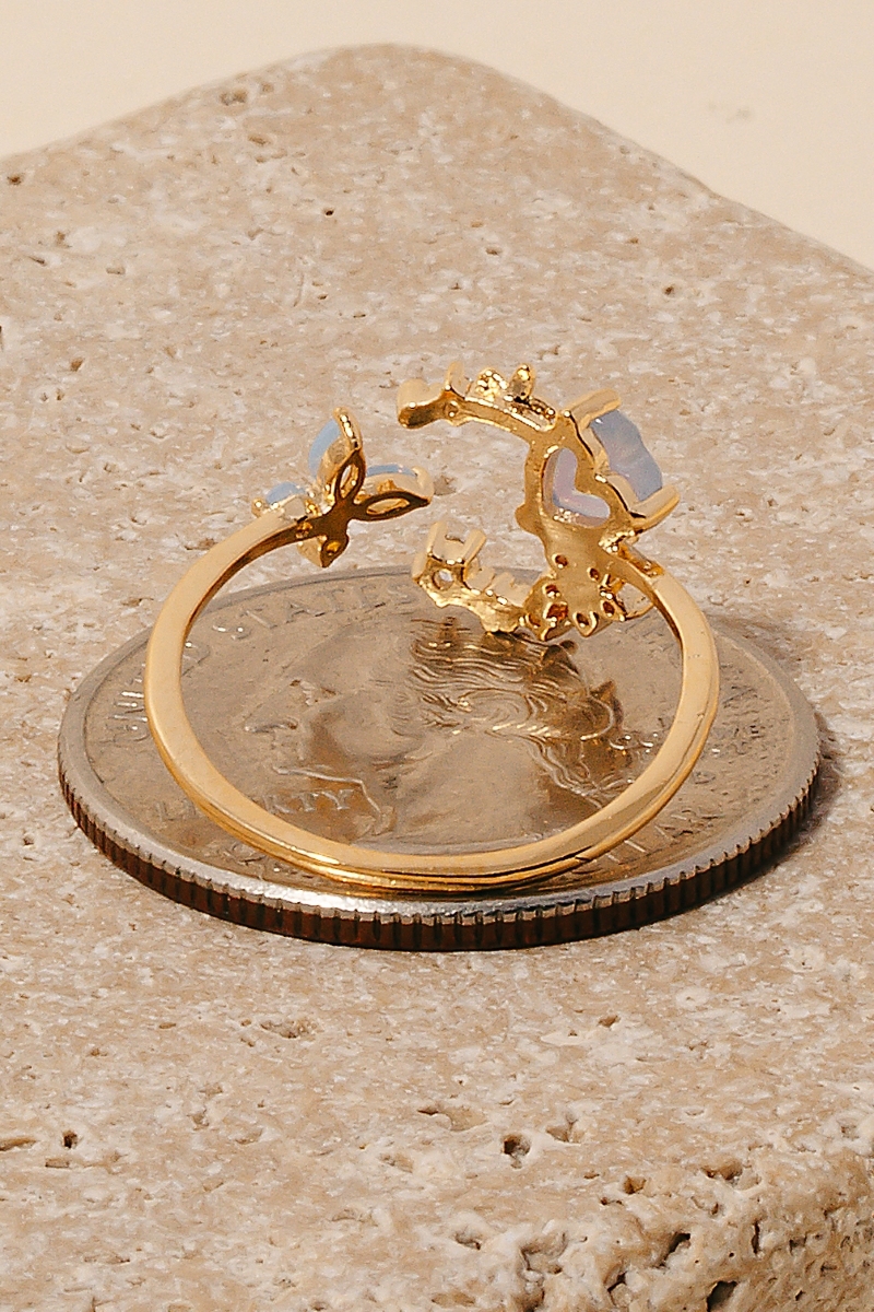 A timeless piece that you'll wear for years to come, this ring radiates a sleek cz butterfly and moon open band design. Perfect for any occasion, this versatile ring will enhance any outfit you wear. Available in G, S. This item is sold in packs of 1.