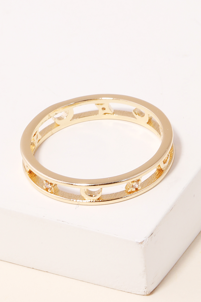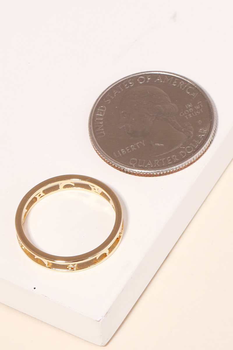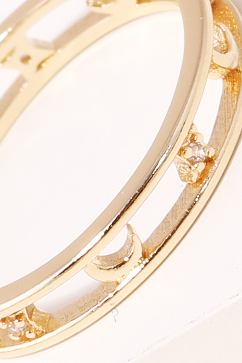 A new soon to be trending must have ring has a gorgeous double band moon ring design. Perfect as a gift for a loved one! Available in G and S. This item is sold in packs of 1.