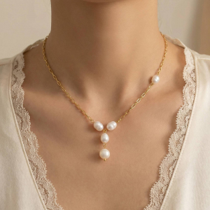 Offset Pearl Beaded Y Chain Necklace