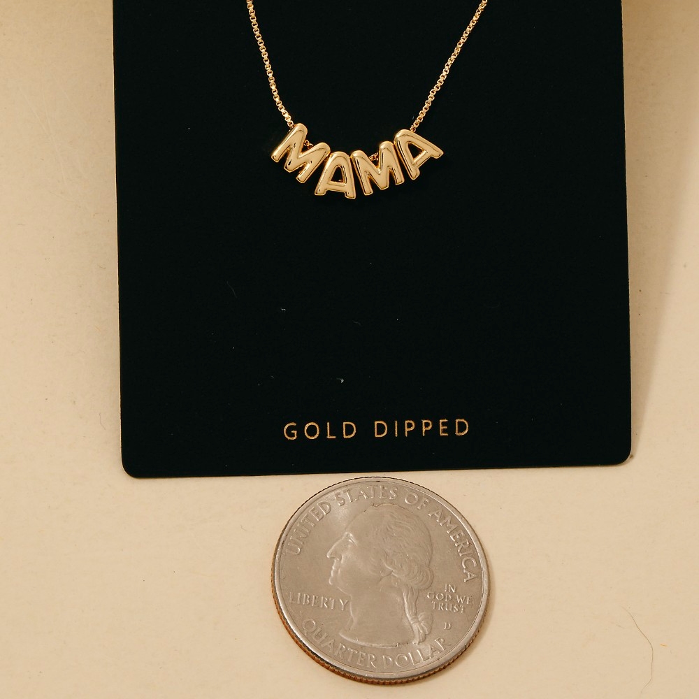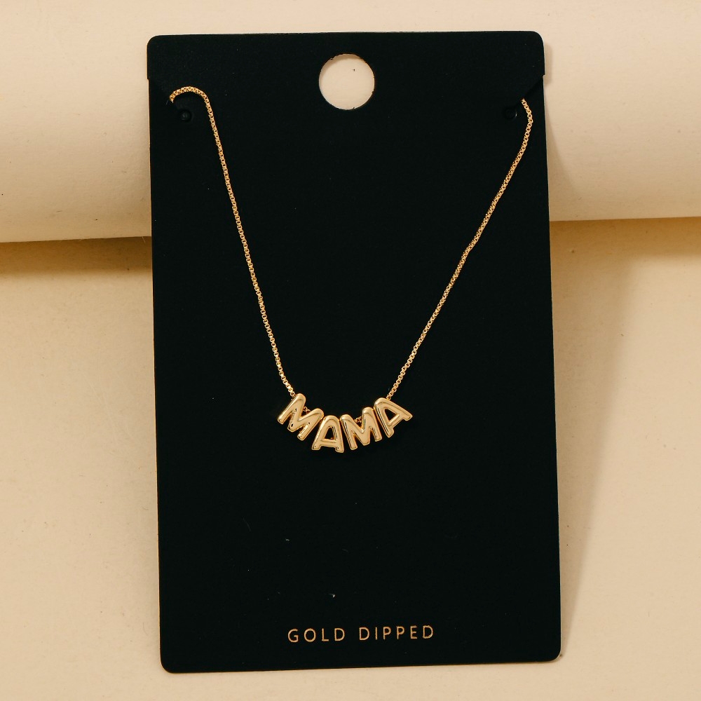 - Perfect for any occasion, from casual to formal, this columbus jewelry chain necklace boasts a magnificent gold dipped mama letters design. Upgrade your fashion game with this versatile chain necklace, a timeless addition that complements any outfit seamlessly. Available in GOLD. This item is sold in packs of 1.