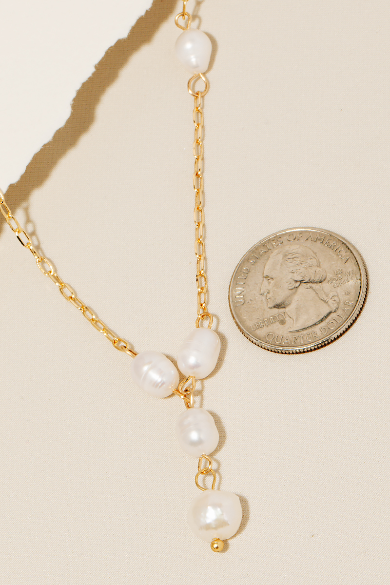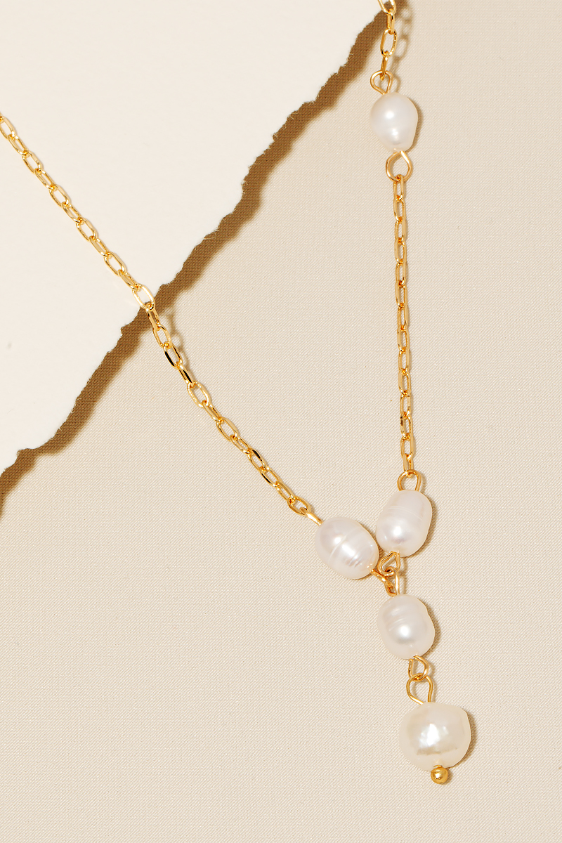 • The perfect way to add some sparkle to your outfit, this chain necklace radiates a sleek offset pearl beaded y design. Discover a new level of fashion versatility as this accessory effortlessly elevates the allure of your attire. Available in GDCRM and RHCRM. This item is sold in packs of 1.