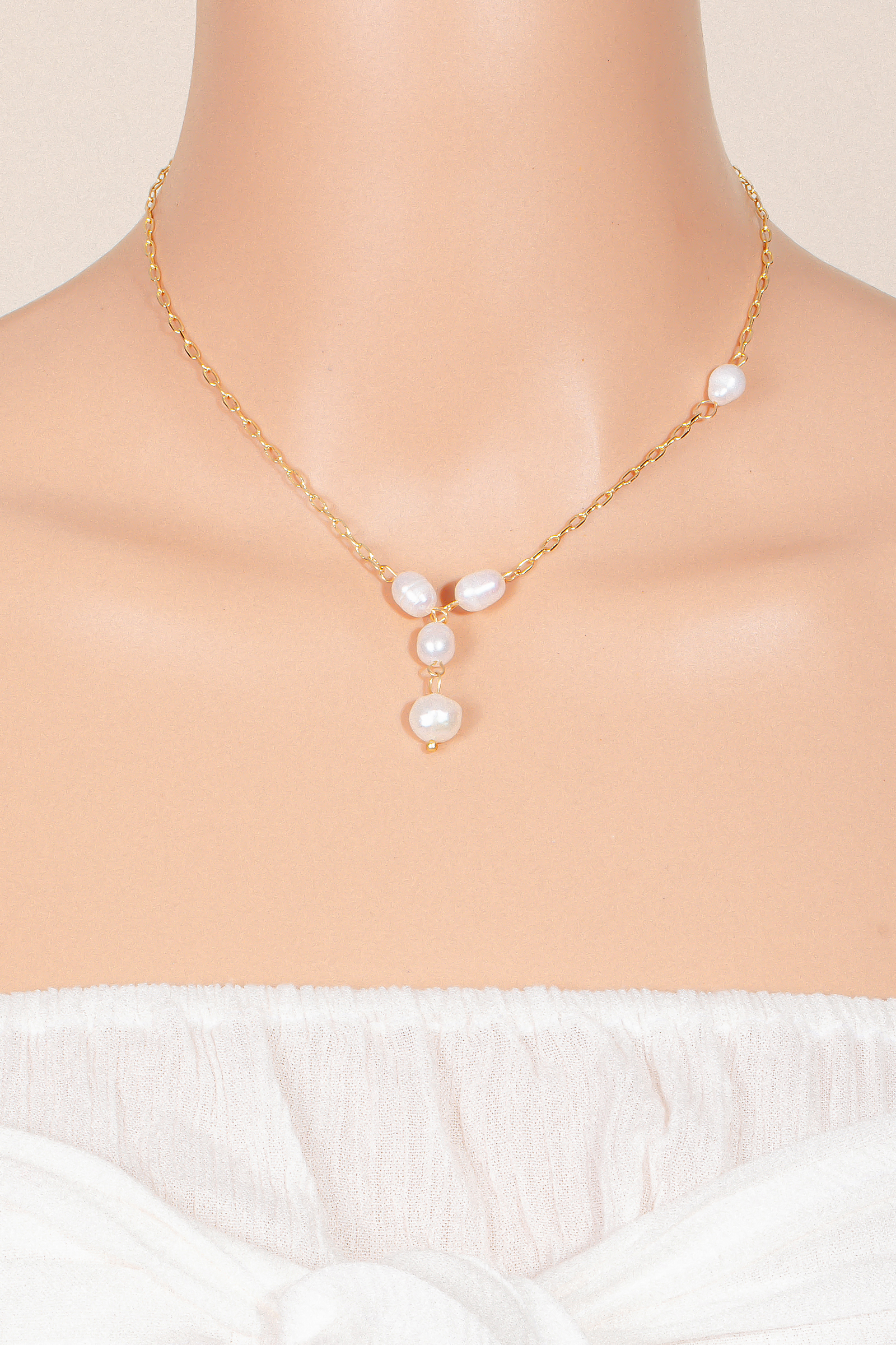• This chain necklace is made with 70% Metal and 30% Pearl.
