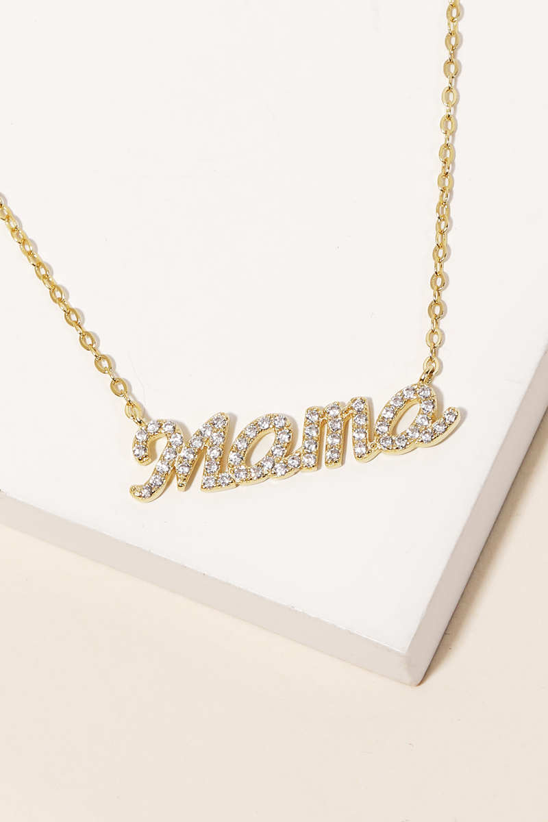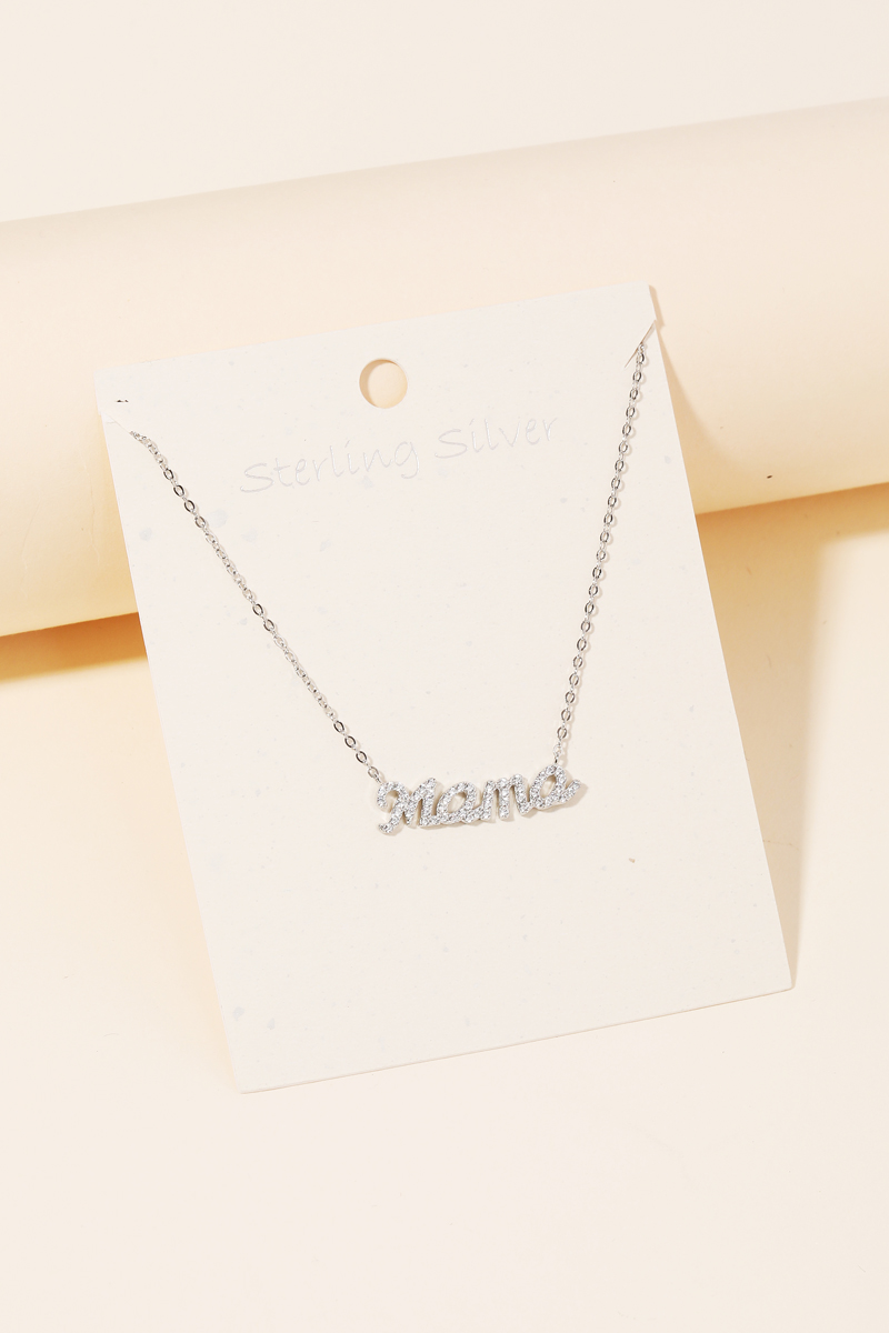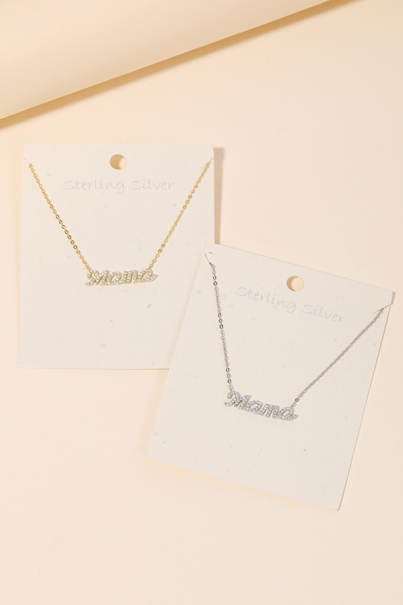 • Chic, sophisticated, and always in style, this necklace exudes a refined sterling silver pave handwritten mama pendant design. A versatile necklace that's perfect for any occasion, adding a touch of elegance and style to any outfit. Available in G and S. This item is sold in packs of 1.