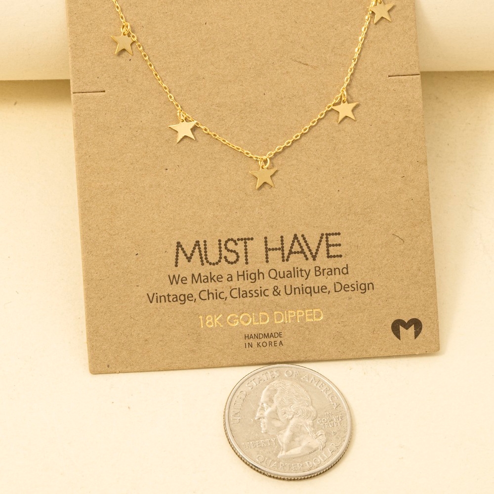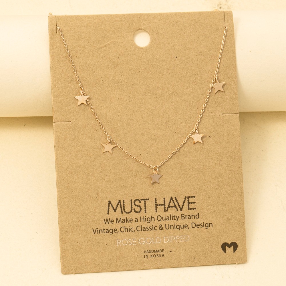 • The perfect way to complete any outfit, this trending necklace evokes a captivating multi mini star charm necklace design. Achieve a perfect blend of style and sophistication with this versatile trending necklace, a fashion-forward choice for any occasion. Available in G, R, S. This item is sold in packs of 1.