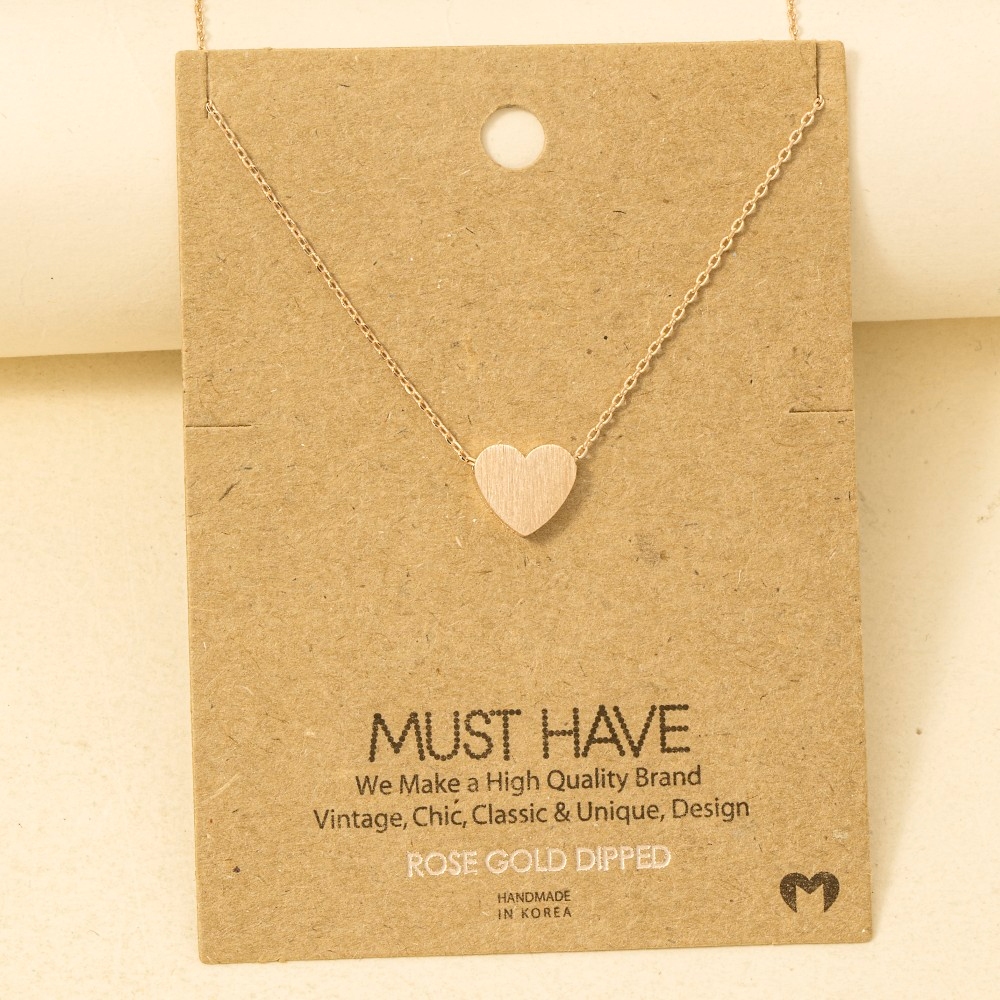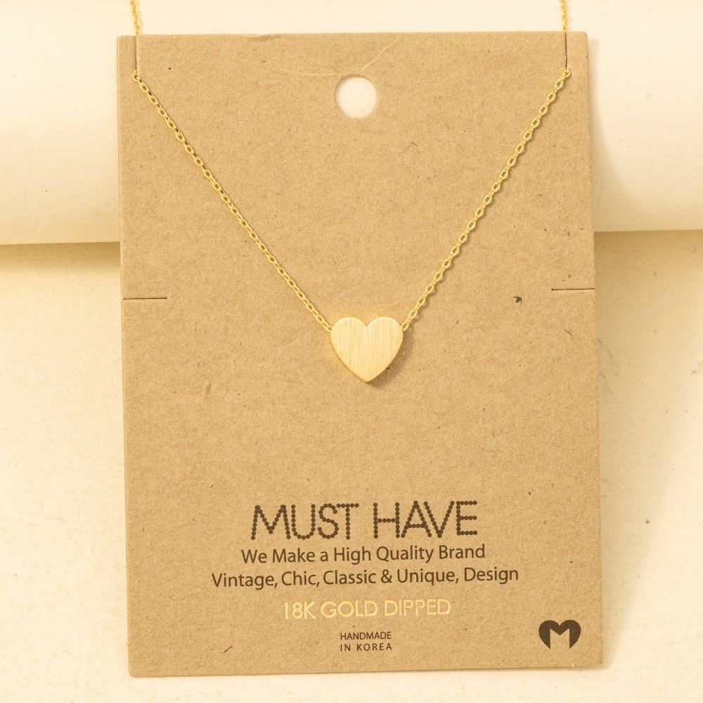 • Sleek, modern, and always stylish, this pendant necklace incorporates a flawless brushed heart design. Add some personality to your outfit with this stylish pendant necklace. Available in G, R, S. This item is sold in packs of 12.