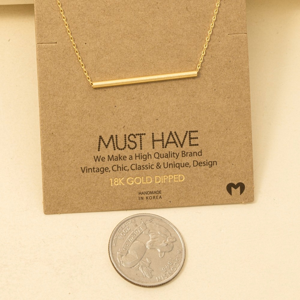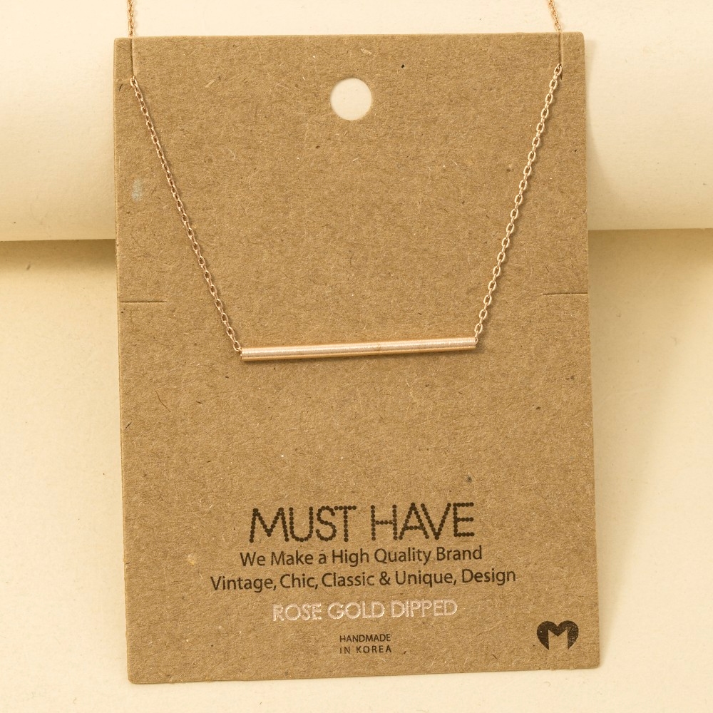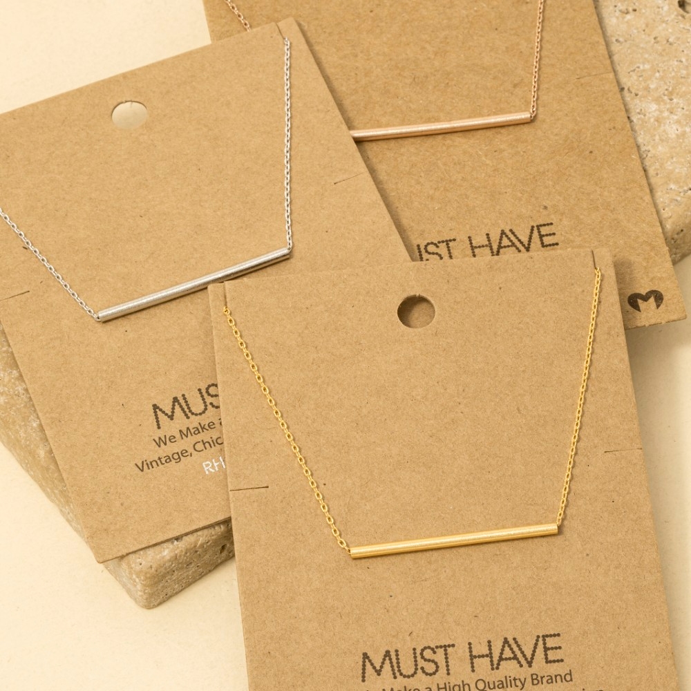 • The perfect way to add some sparkle to your outfit, this trending necklace features an exceptional cylinder bar pendant necklace design. Unleash the potential of your wardrobe with this versatile trending necklace, ensuring a touch of elegance in every ensemble. Available in G, R, S. This item is sold in packs of 1.