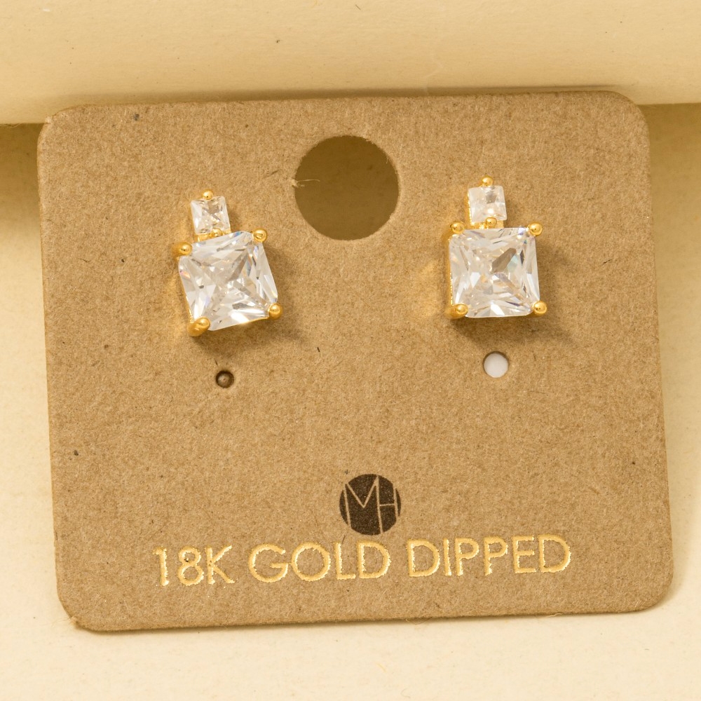 This season's hottest accessory, this pair of stud earrings exudes a refined gold dipped square rhinestones stud earrings design. This accessory is a great way to add some glamour and sophistication to your outfit. Available in G and S. This item is sold in packs of 1.
