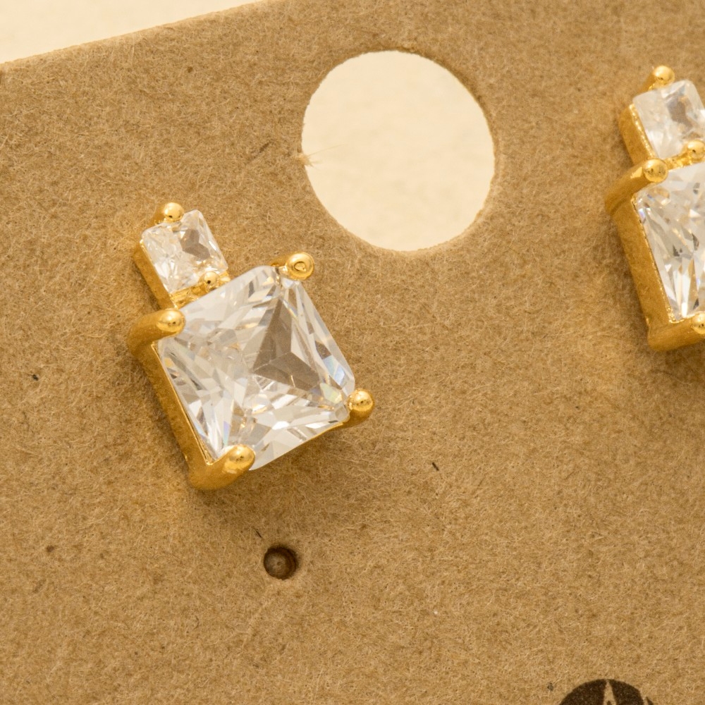 This pair of stud earrings is made with 50% Brass and 50% Cubic Zirconia.