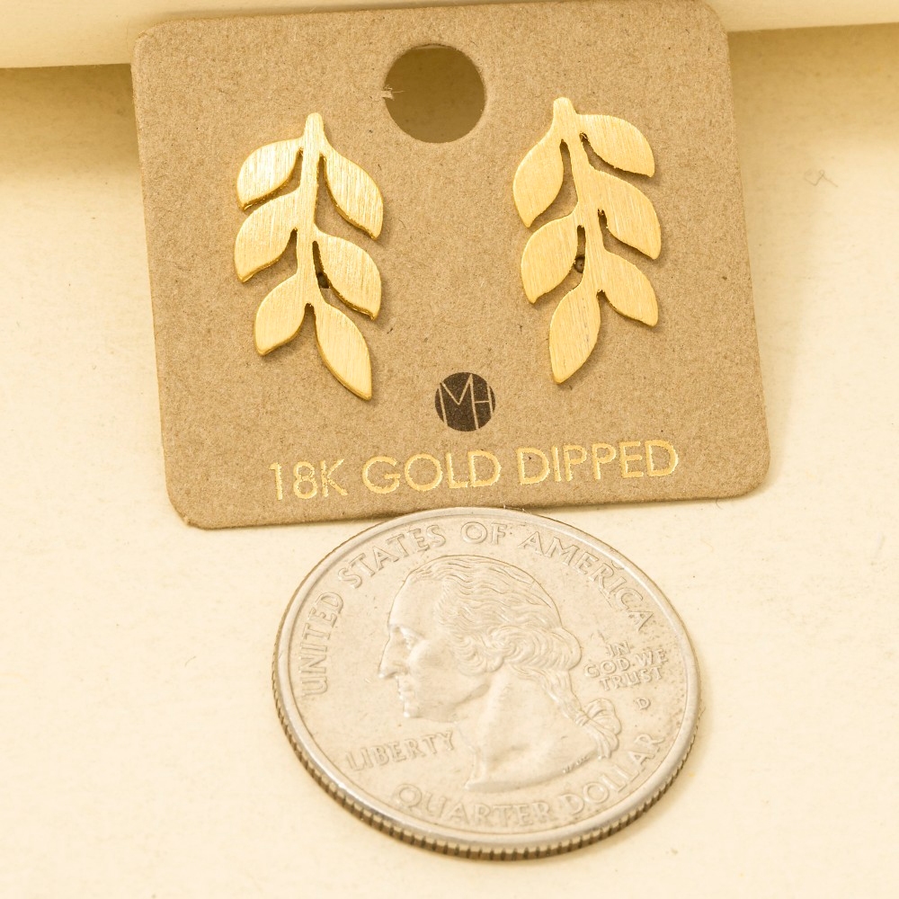 • Perfect for any fashion-forward individual, this trending pair of earrings presents a striking mini gold dipped leafy branch stud earring design. The perfect trending pair of earrings for completing any outfit, whether you're dressing up or keeping it casual. Available in G, S and R. This item is sold in packs of 1.
