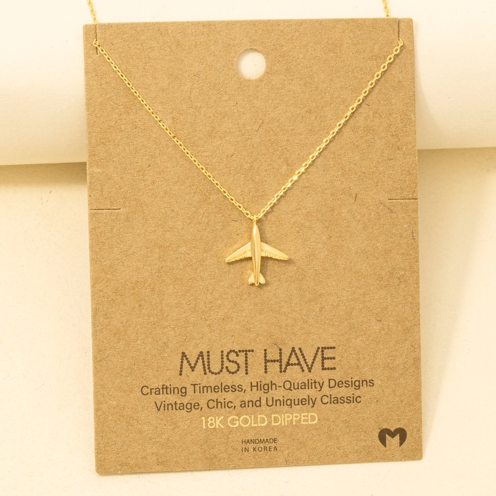 The perfect way to add some sparkle to your outfit, this pendant necklace evokes a captivating gold dipped airplane design. Elevate your fashion ensemble effortlessly with this versatile pendant necklace, a stylish choice for the modern trendsetter. Available in G, S and R. This item is sold in packs of 12.