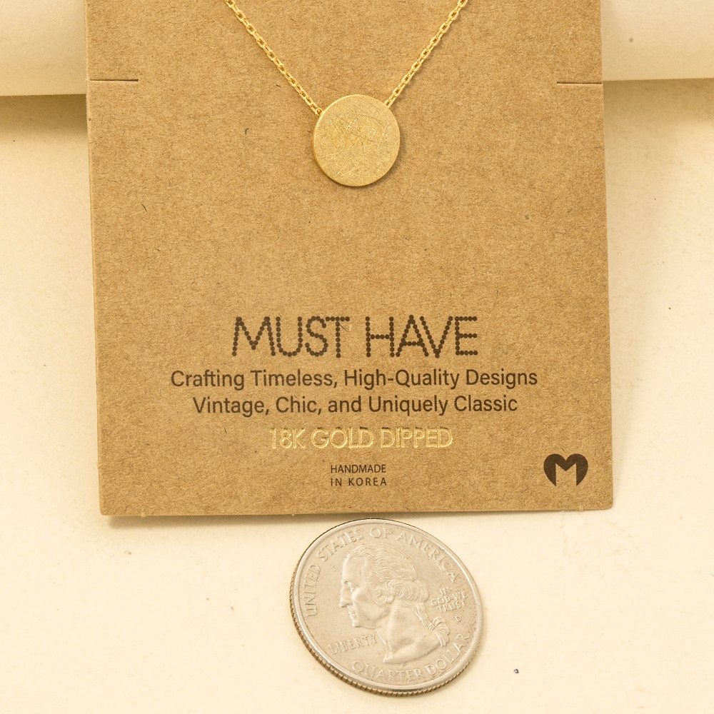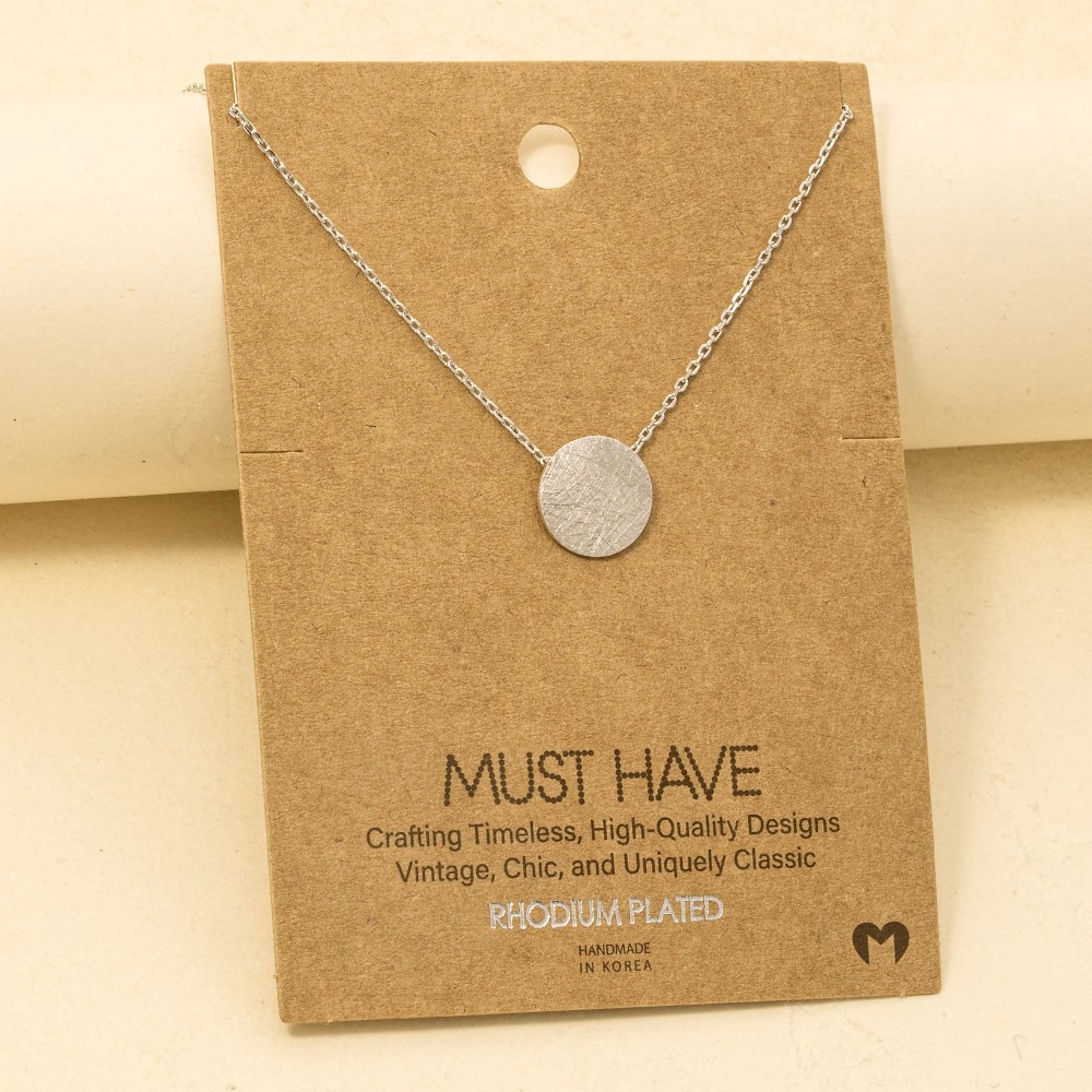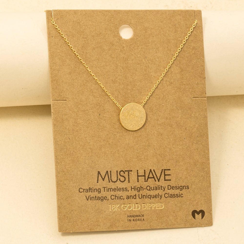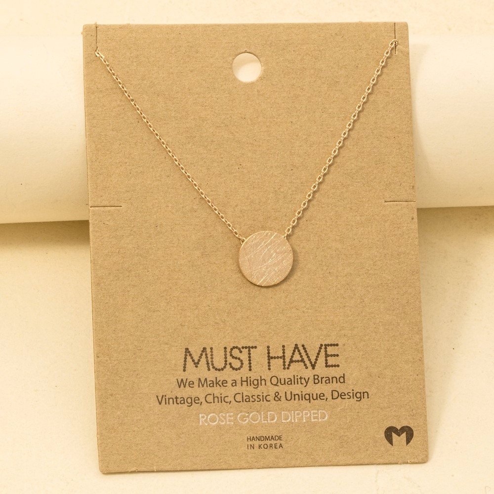 • This season's hottest trending necklace, this trending necklace incorporates a flawless gold dipped brushed disc pendant necklace design. A chic and sophisticated trending necklace that's perfect for dressing up or down. Available in G, R, S. This item is sold in packs of 1.
