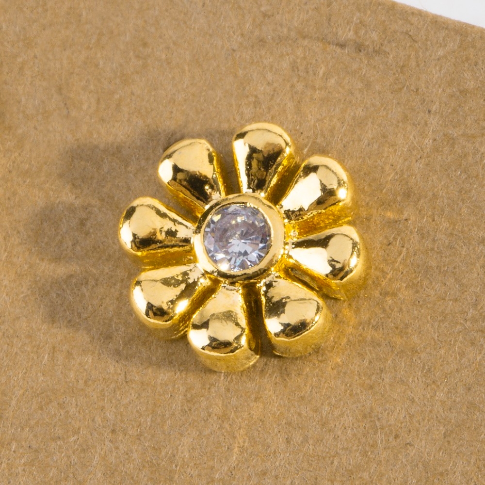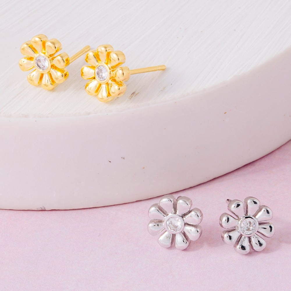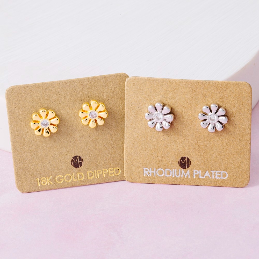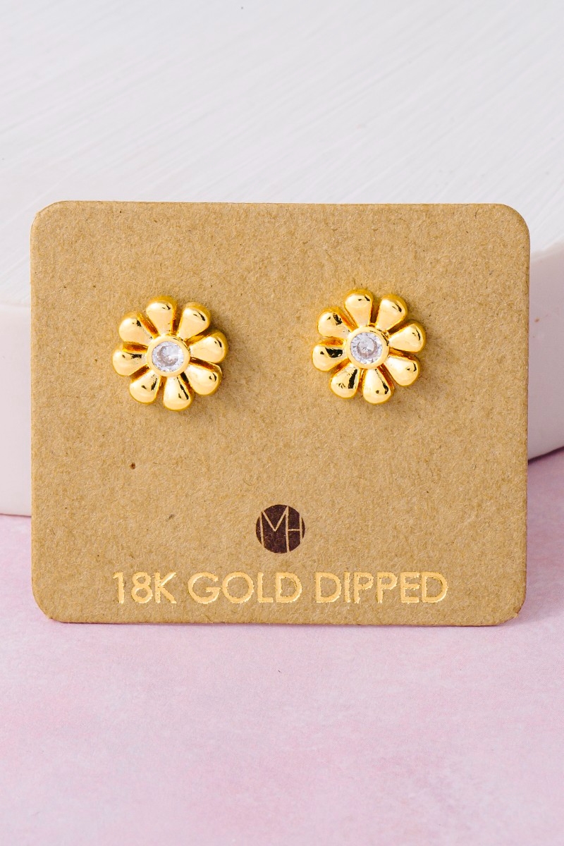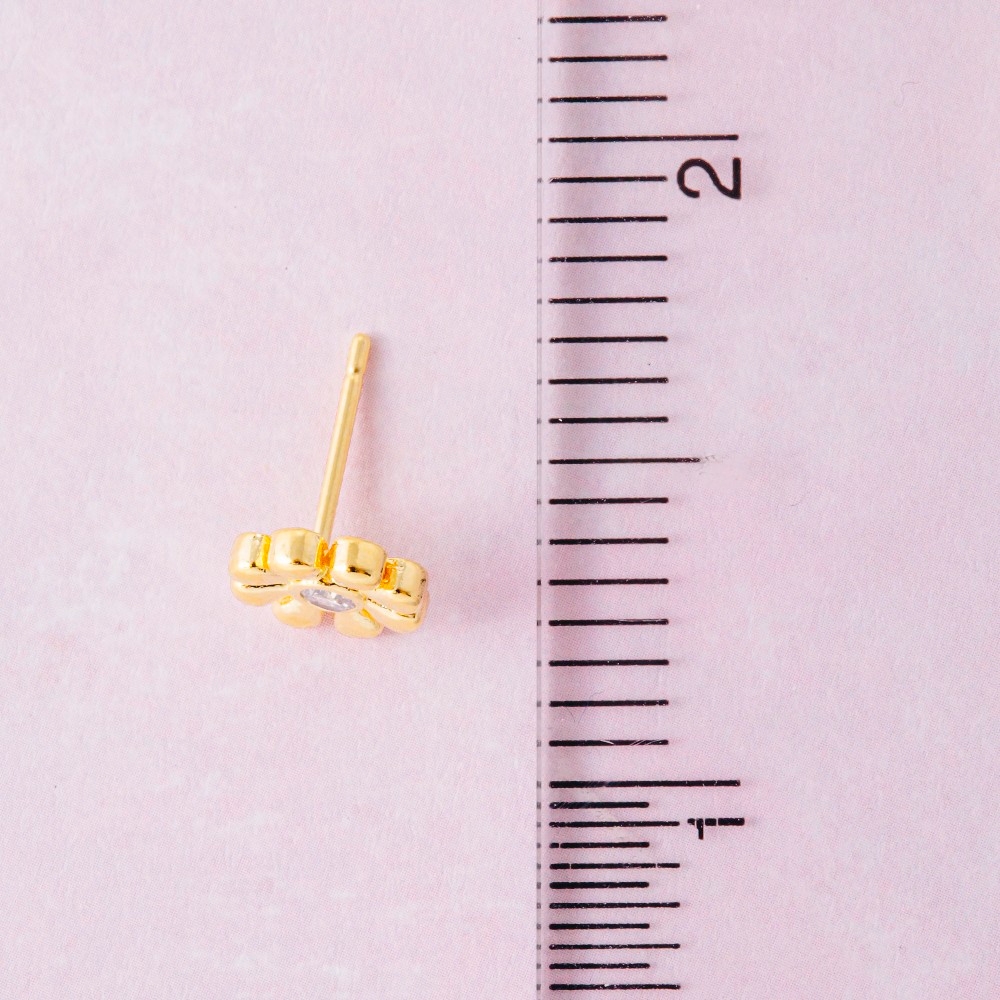 Bold and daring, this pair of stud earrings boasts a magnificent gold dipped cubic zirconia mini flower design. This pair of stud earrings is a great way to add some flair to your outfit without going over the top. Available in G, S. This item is sold in packs of 1.