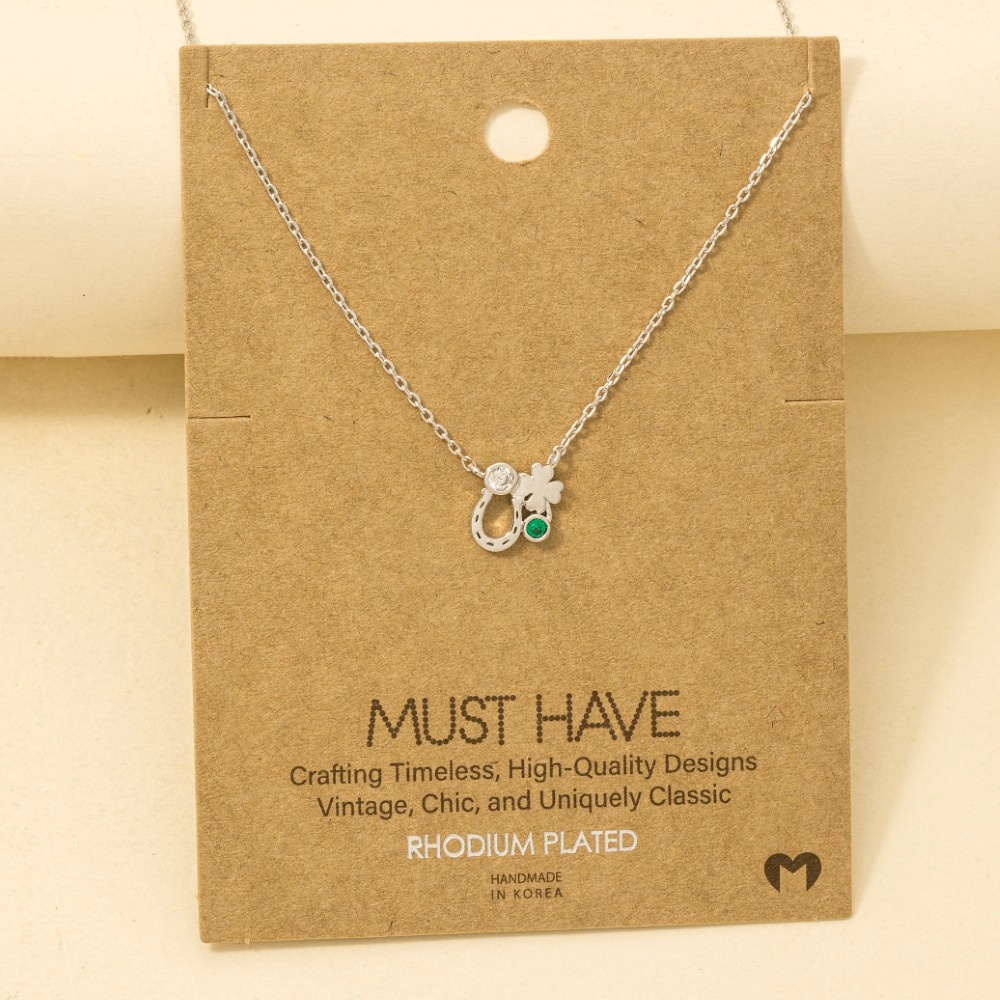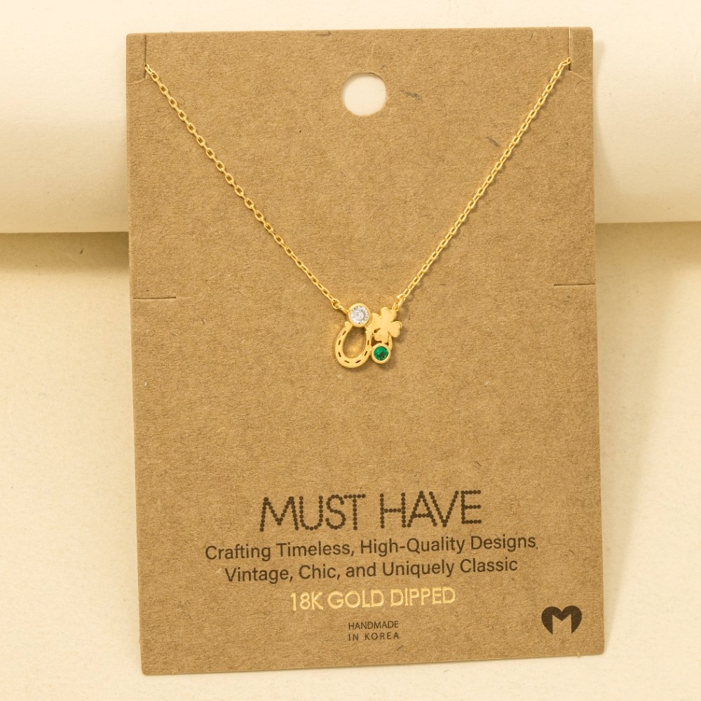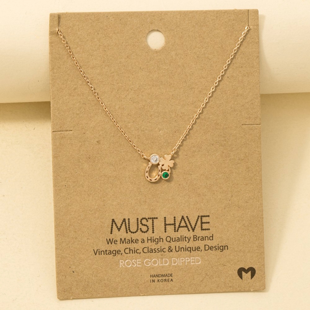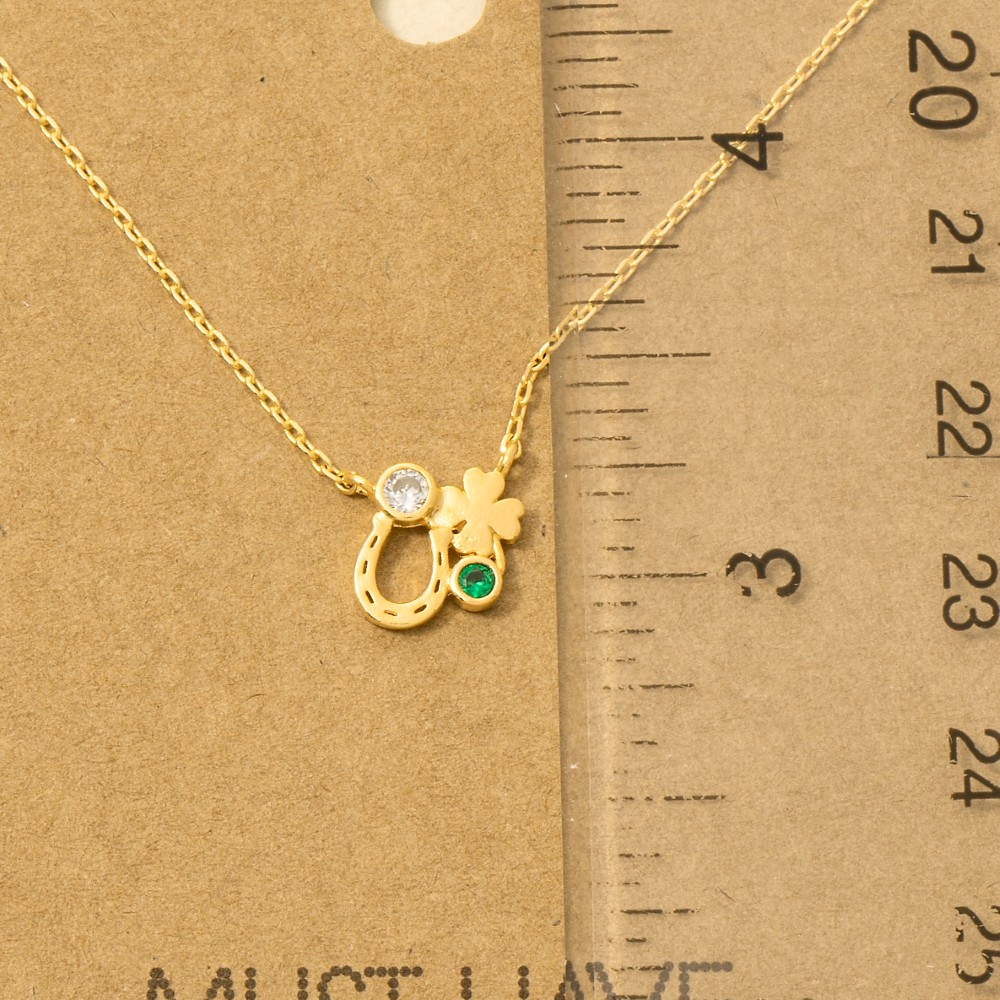A must-have addition to any trending necklace collection, this trending necklace contains a special gold dipped horse shoe clover and cubic zirconia pendant chain necklace design. A versatile trending necklace that's perfect for any occasion, adding a touch of elegance and style to any outfit. Available in G, R, S. This item is sold in packs of 1.