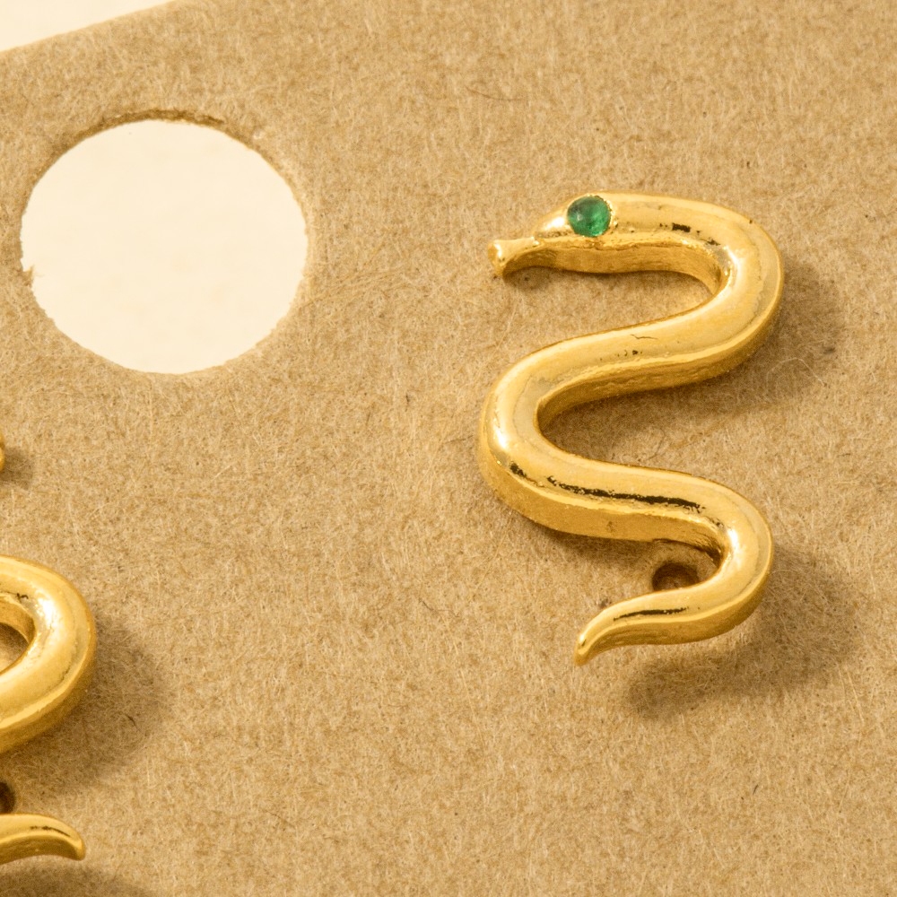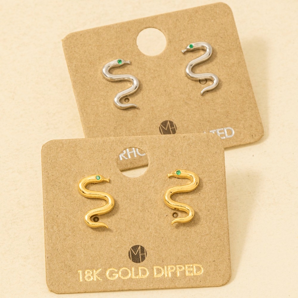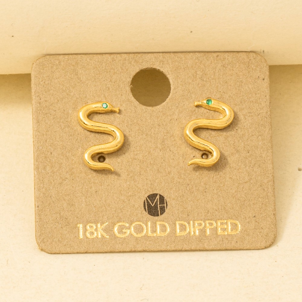 A piece that will never go out of style, this trending pair of earrings carries a charming gold dipped mini cubic zirconia snake earrings design. This item is ideal for those who want to add some personality to their outfits without being too bold. Available in G, S. This item is sold in packs of 1.